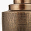Our stylish antique brass metal table lamp is lovingly made in India. The long-standing technique of hand-hammering has been used to create this beautifully textured and charming antique brass, metal table lamp. The metal table lamp base is adorned with a modern black linen cylinder lamp shade to complete the look. The self-lined shade in an open-weave material allows the light to filter through creating an ambient glow.