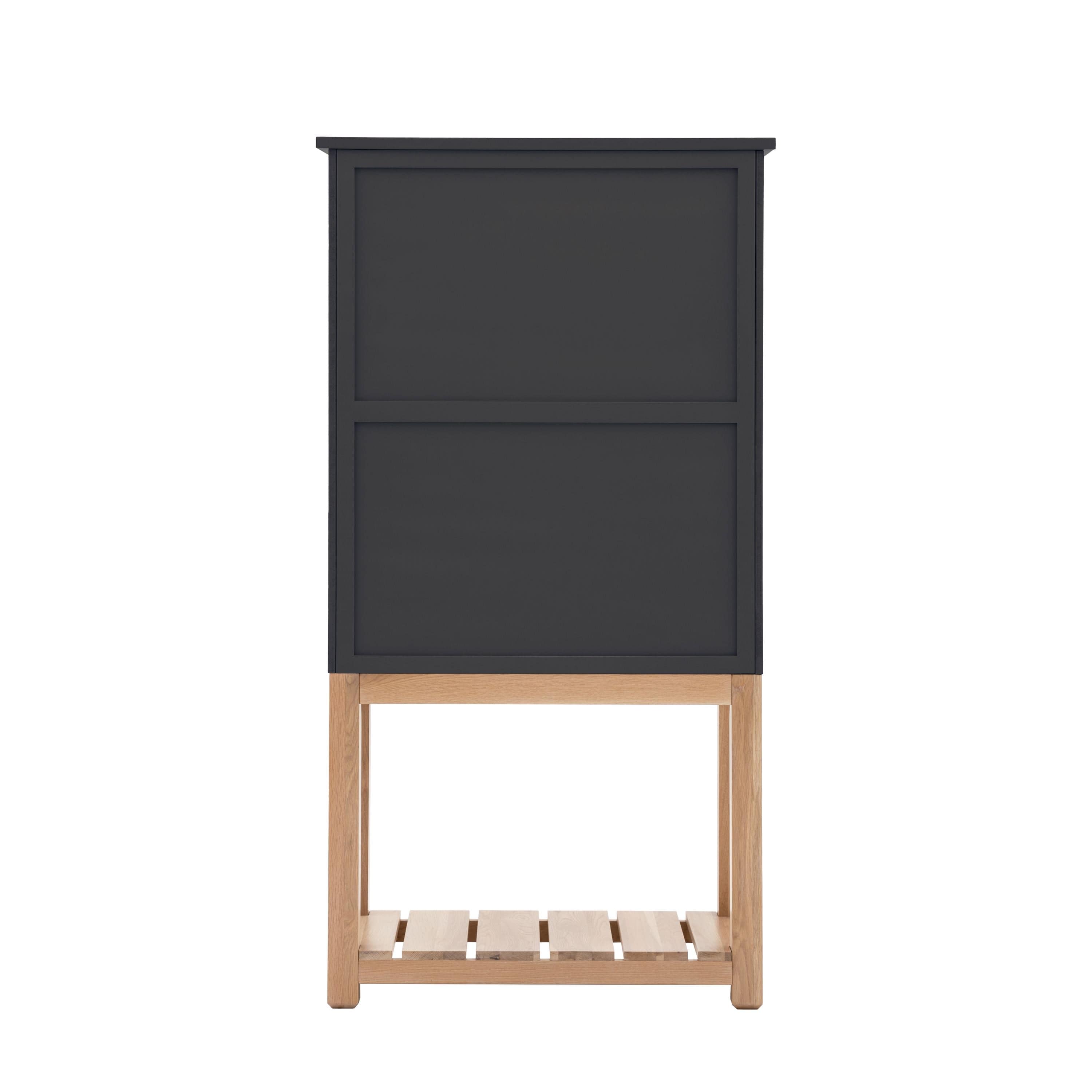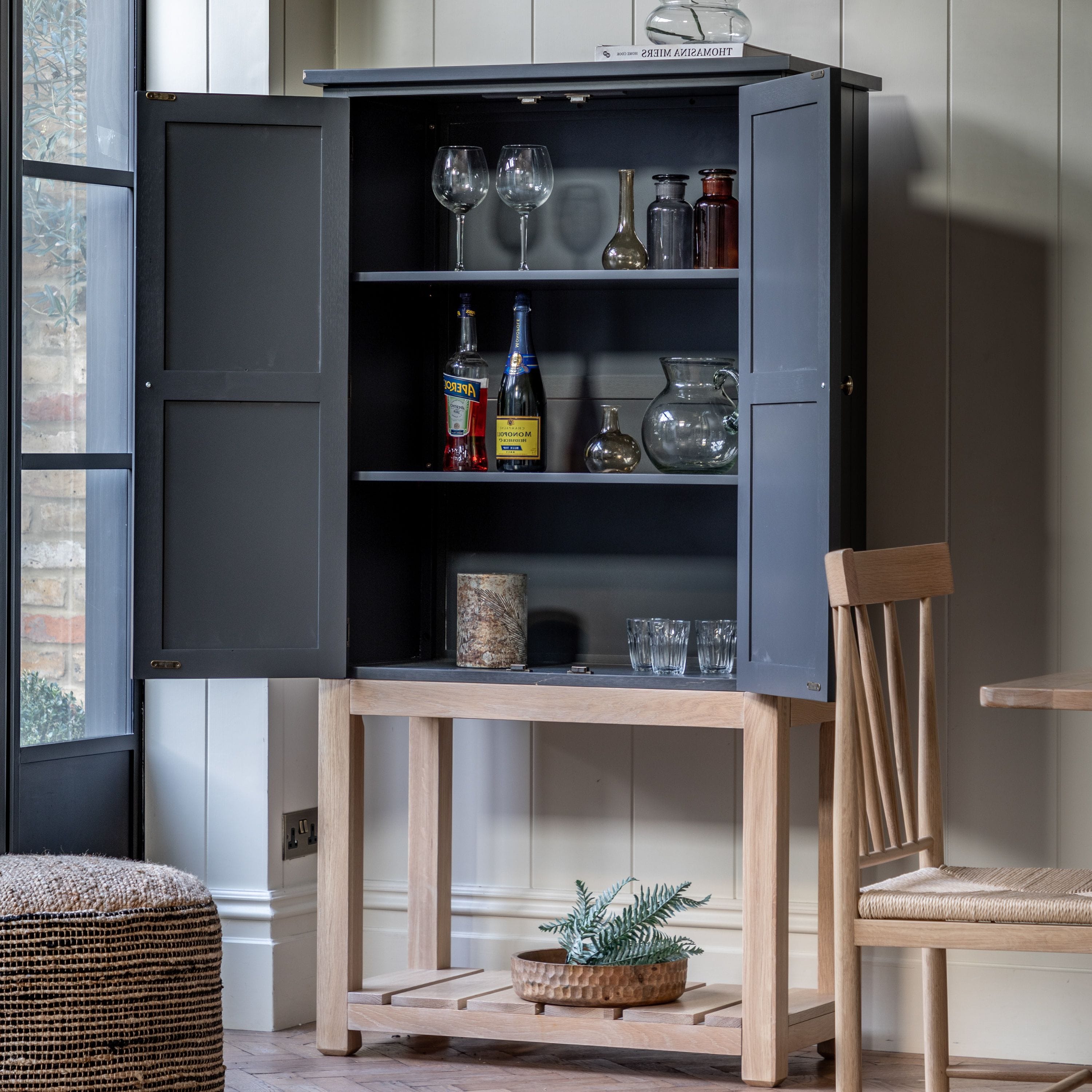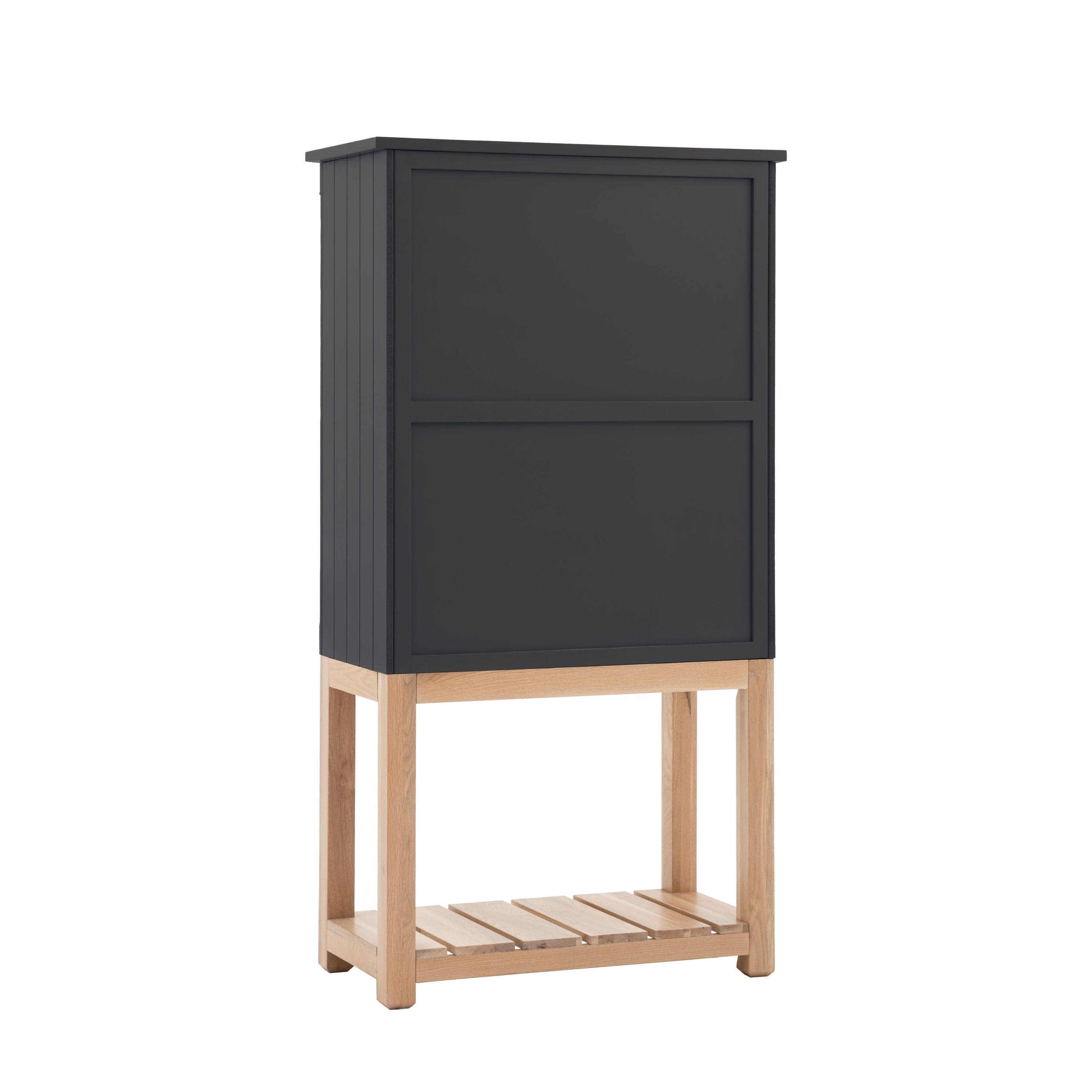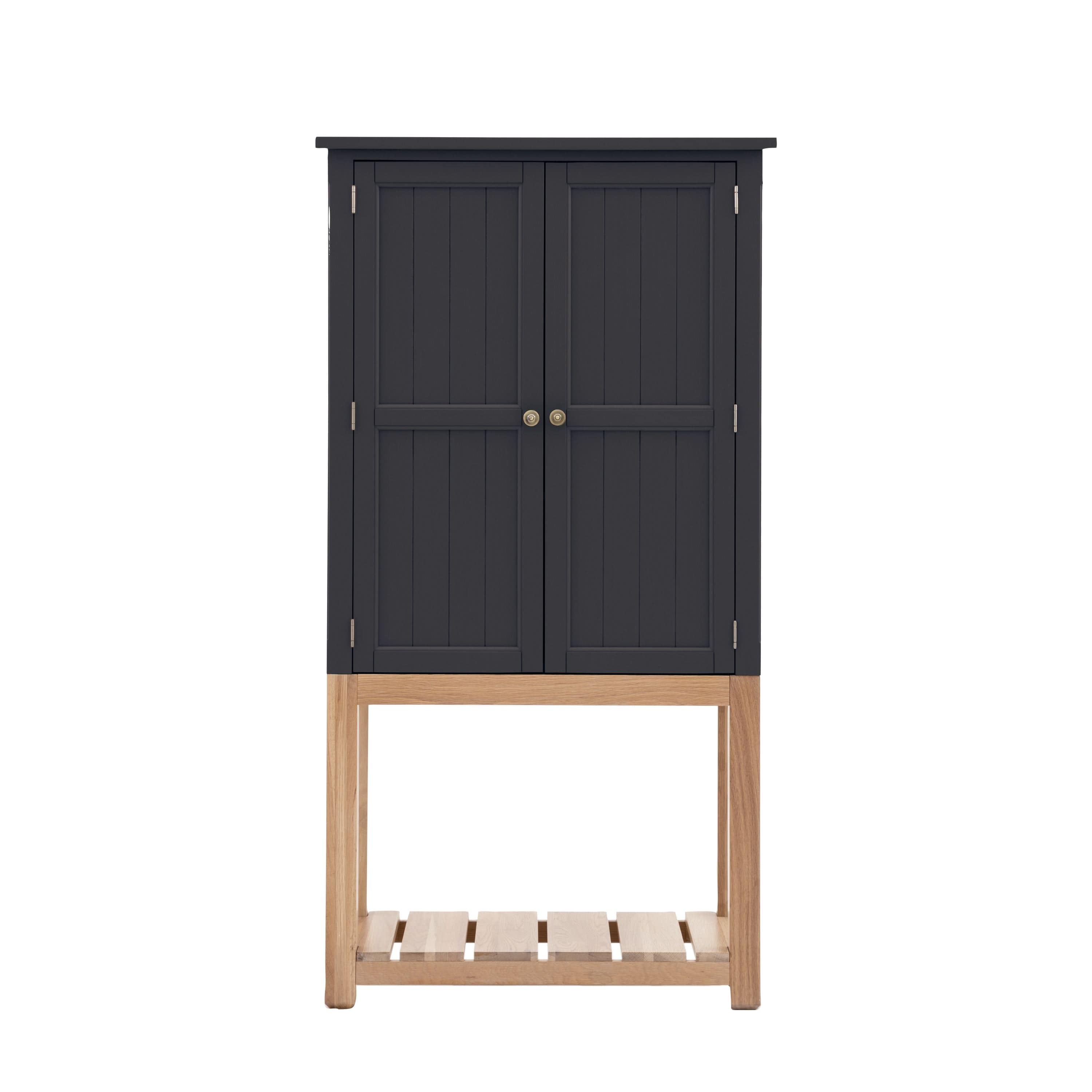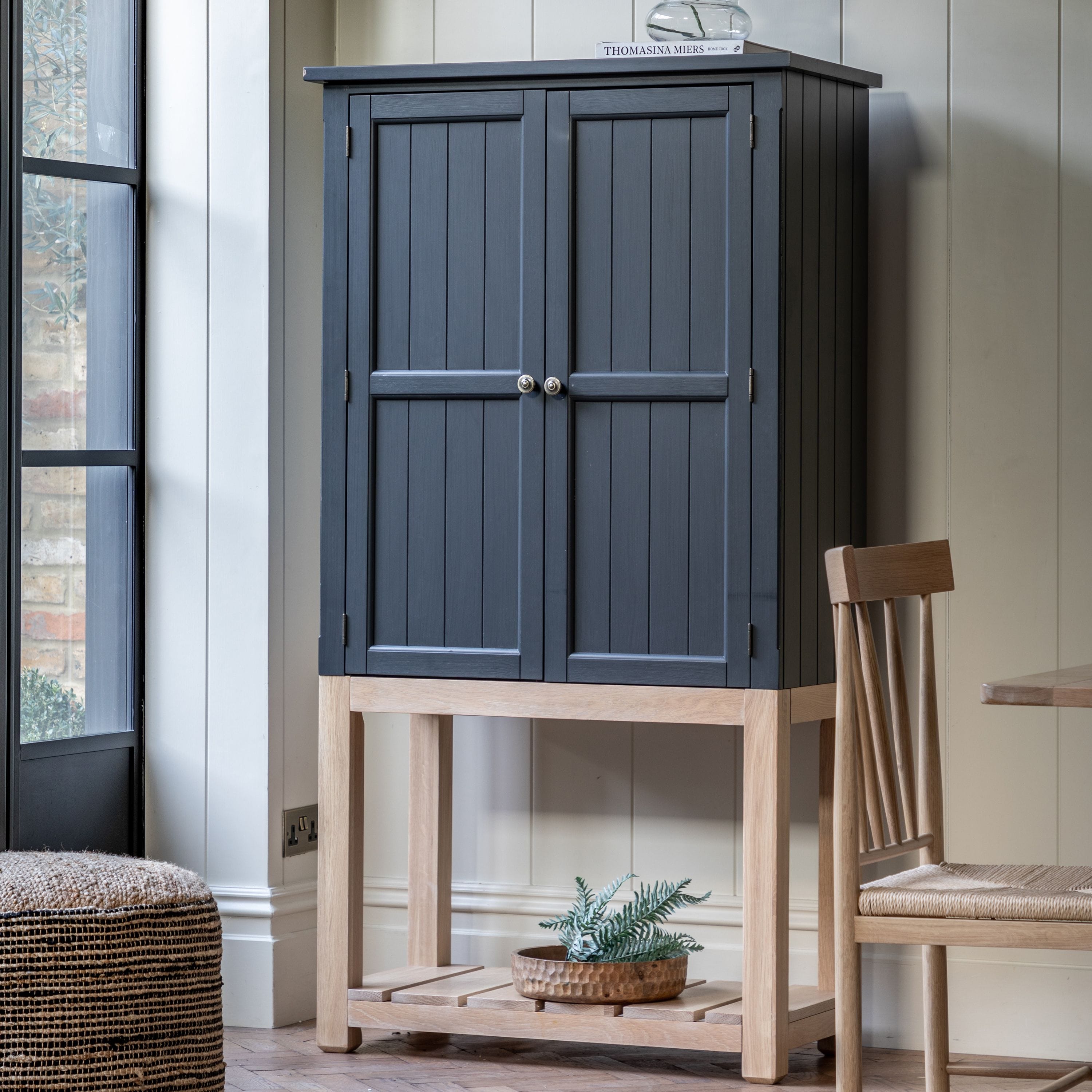 A modern update on a classic farmhouse style cabinet. Offering plenty of space with an upper cupboard and a lower shelf, this cabinet is a great storage solution. The traditional rustic elements are given a contemporary twist with the hand painted textured finish top paired with the solid oak base.