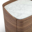 Experience the captivating blend of beauty and functionality embodied by the Vertu Bedside Table, a stunning addition that effortlessly elevates your bedroom ensemble with grace and sophistication. Meticulously crafted with walnut veneer and adorned with Bianco Carrara marble, this exquisite piece boasts a chic design highlighted by two drawers, elegant curved lines, and a top lip detail, creating a timeless and refined appearance. Not only does it offer reliable storage, but it also becomes a striking statement piece, making it the ideal complement to any bedroom, exuding both style and practicality.