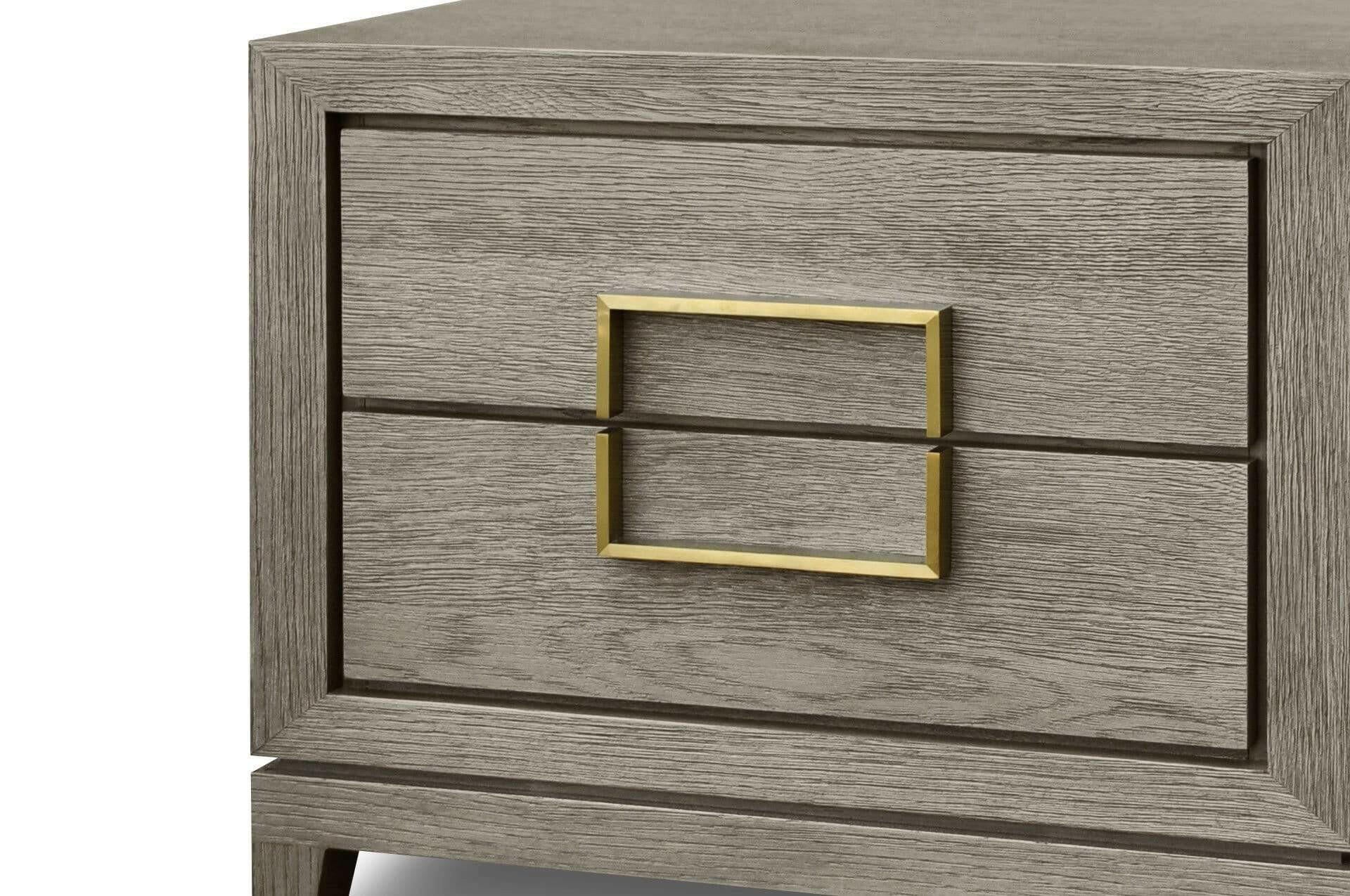 The Lucca Bedside Cabinet with 2-Drawers from House of Isabella is a must-have piece for any stylish bedroom. Made with a textured grey/taupe oak veneer, this cabinet exudes elegance and sophistication. The gold handles, in a unique rectangular shape, add a touch of glamour to the overall design. Measuring 65 W x 55 H x 45 D, this cabinet is the perfect size for storing all your bedside essentials. It pairs perfectly with the Lucca Chest of Drawers, Coffee Table, and Media Unit, making it a versatile addition to any interior design project. Plus, with free UK delivery, you can easily add a touch of luxury to your home with the Lucca Bedside Cabinet.