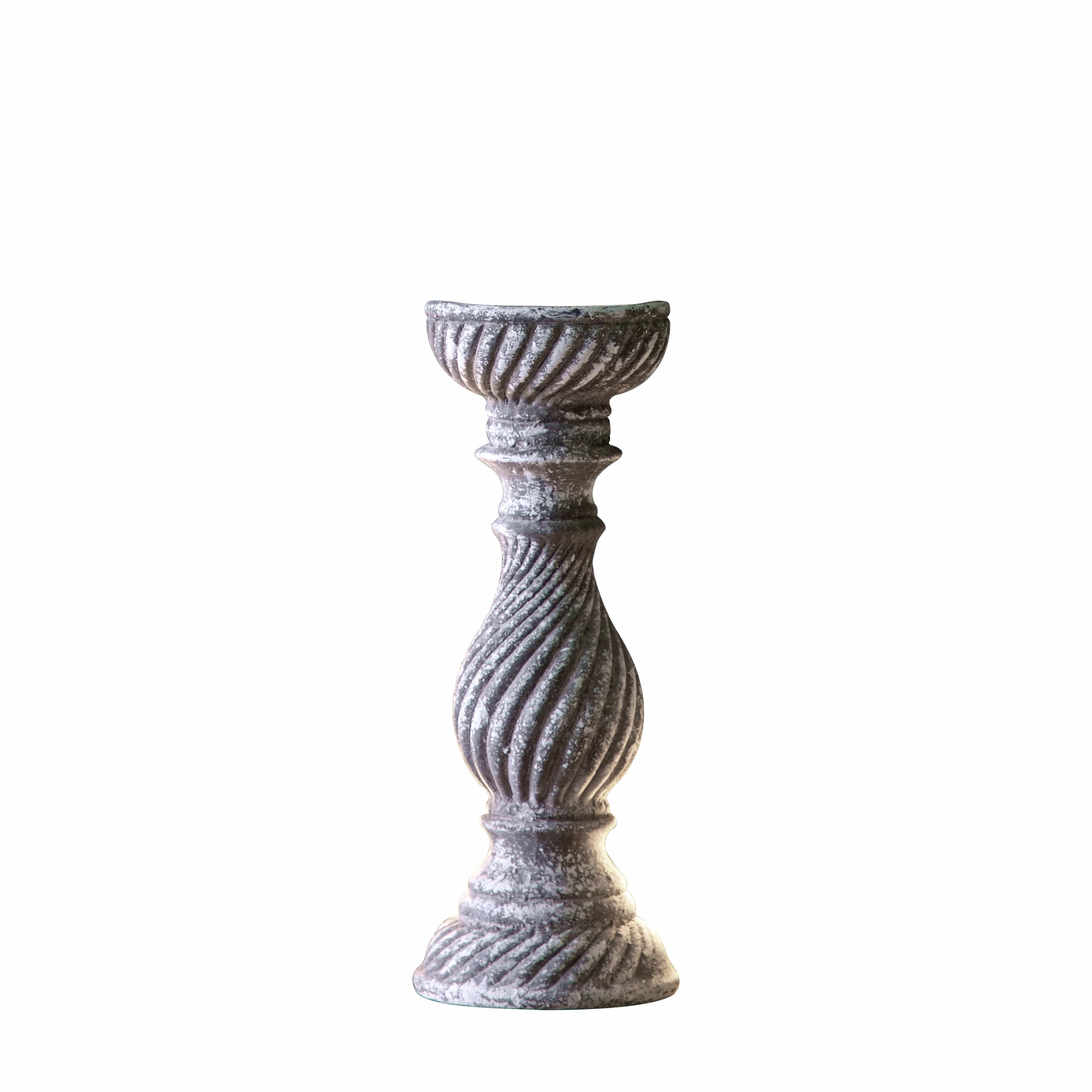 Introducing the Andersea Candlestick Aged Small, a stunning traditional style candlestick with an aged grey design that exudes elegance and antique charm. This beautiful piece is the perfect addition to any home decor and pairs perfectly with our pillar candles. Available in a smaller size, these candlesticks look even more stunning when styled together.