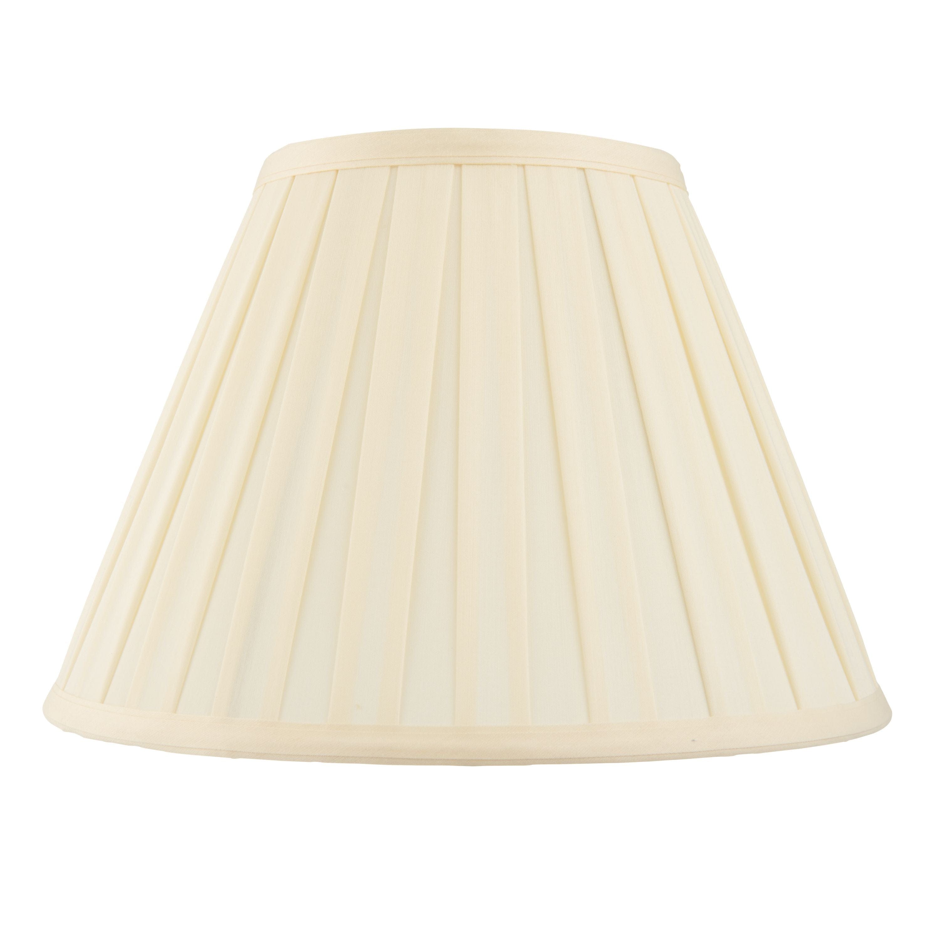 The 6 inch Carlos is a tapered drum shaped shade with cream box pleat fabric. Comes complete with a clip fitting for use with table lamps, chandeliers and wall fixtures. Available in a choice of sizes