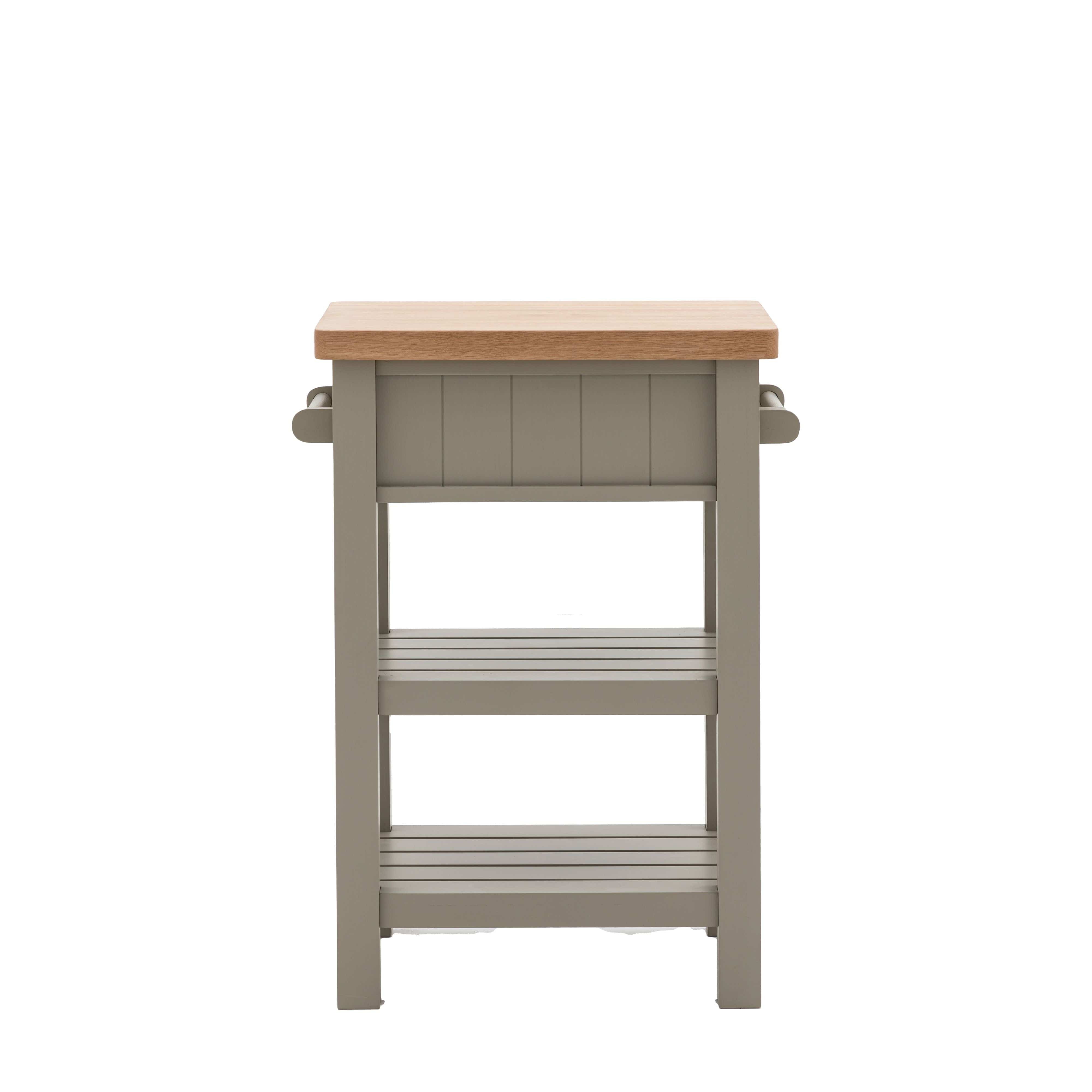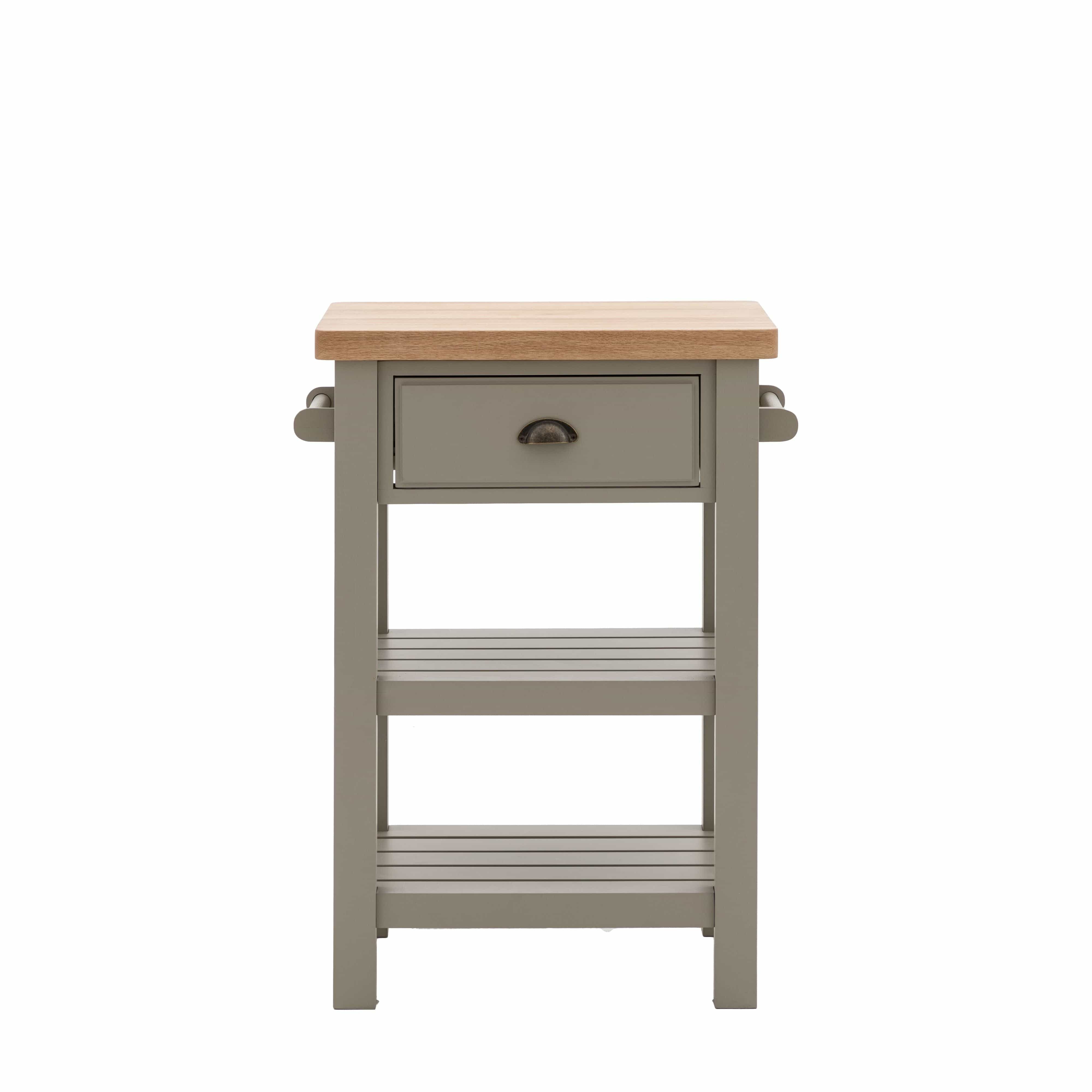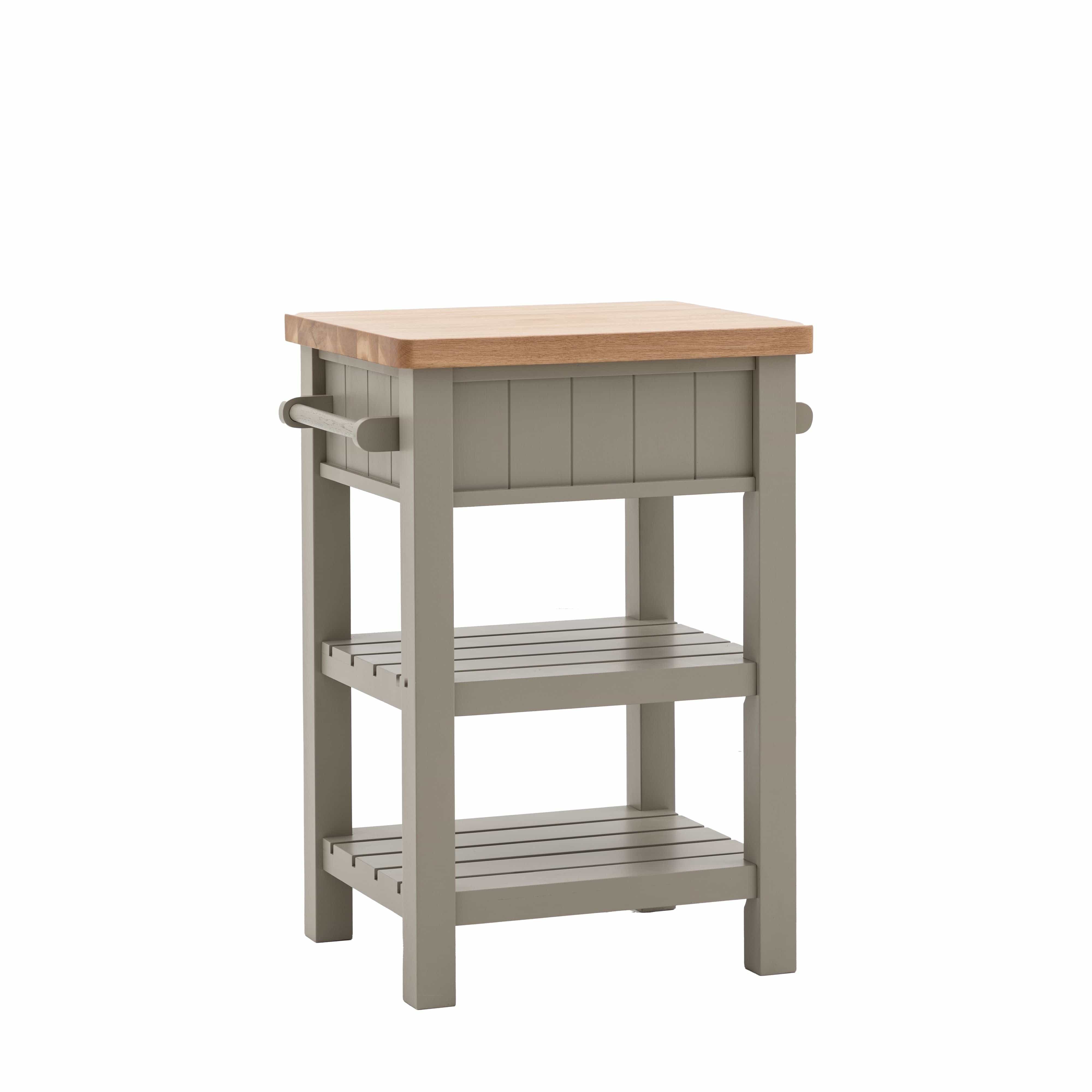 Add a little extra workspace and storage to any kitchen. With a solid oak top sturdy enough for daily use, 2 shelves, handy hanging rail and drawer, this butchers block is a practical addition to any kitchen. With its hand painted base and metal drawer handles, this block offers a modern take on traditional style.