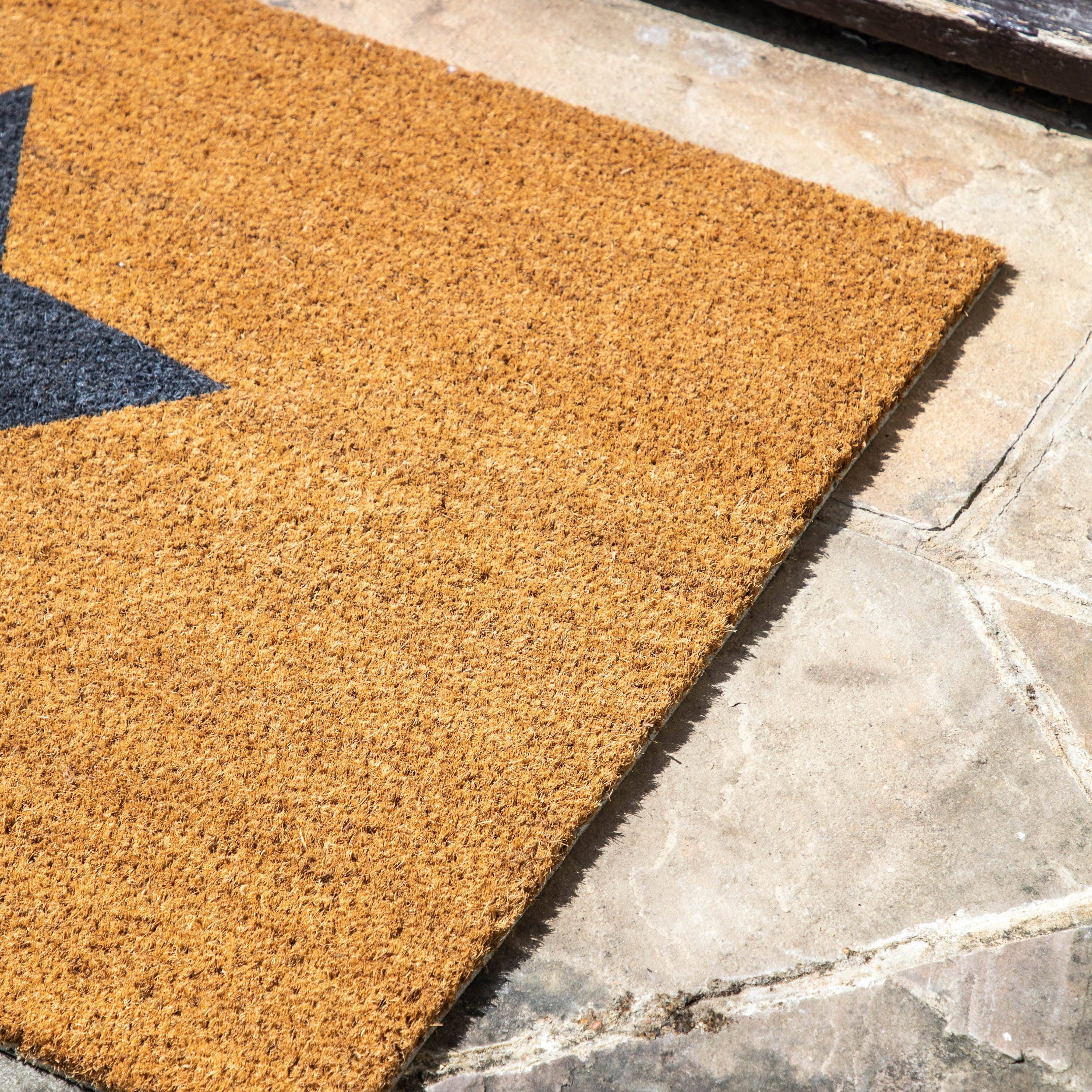 A classic coir doormat with a stylish grey star design. Ideal for cleaning boots and shoes before entering the house.