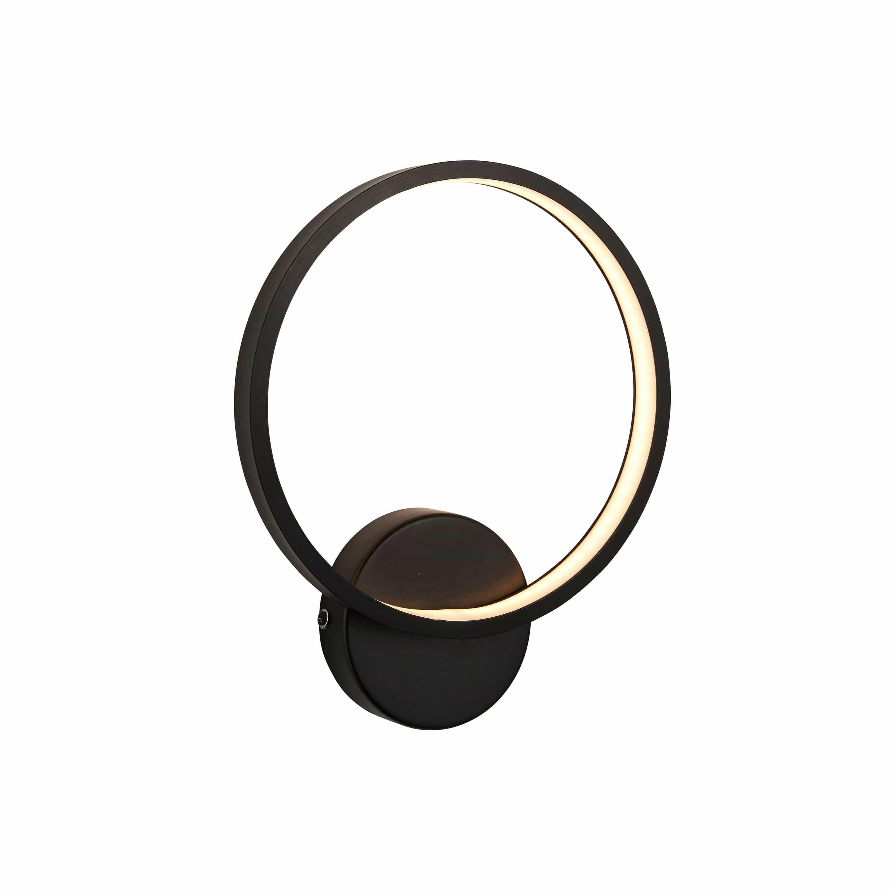 Designer architectural style wall light. Textured black finish with white diffuser this circular wall light is IP44 rated and corrosive resistant. Safe to use in bathrooms and outdoors.