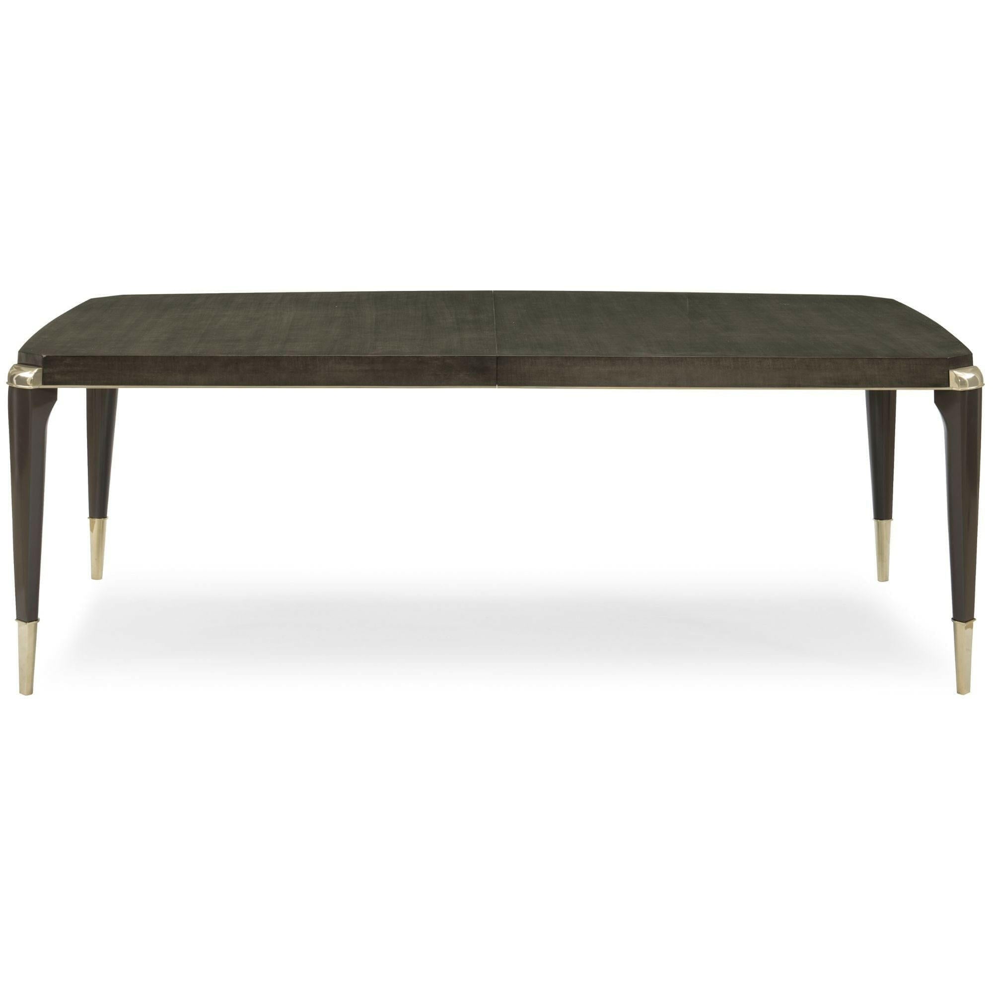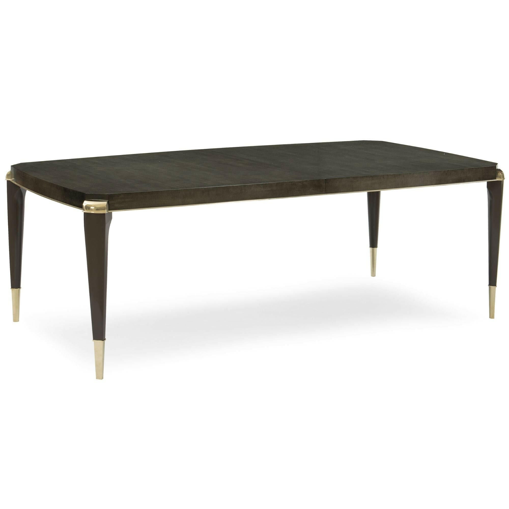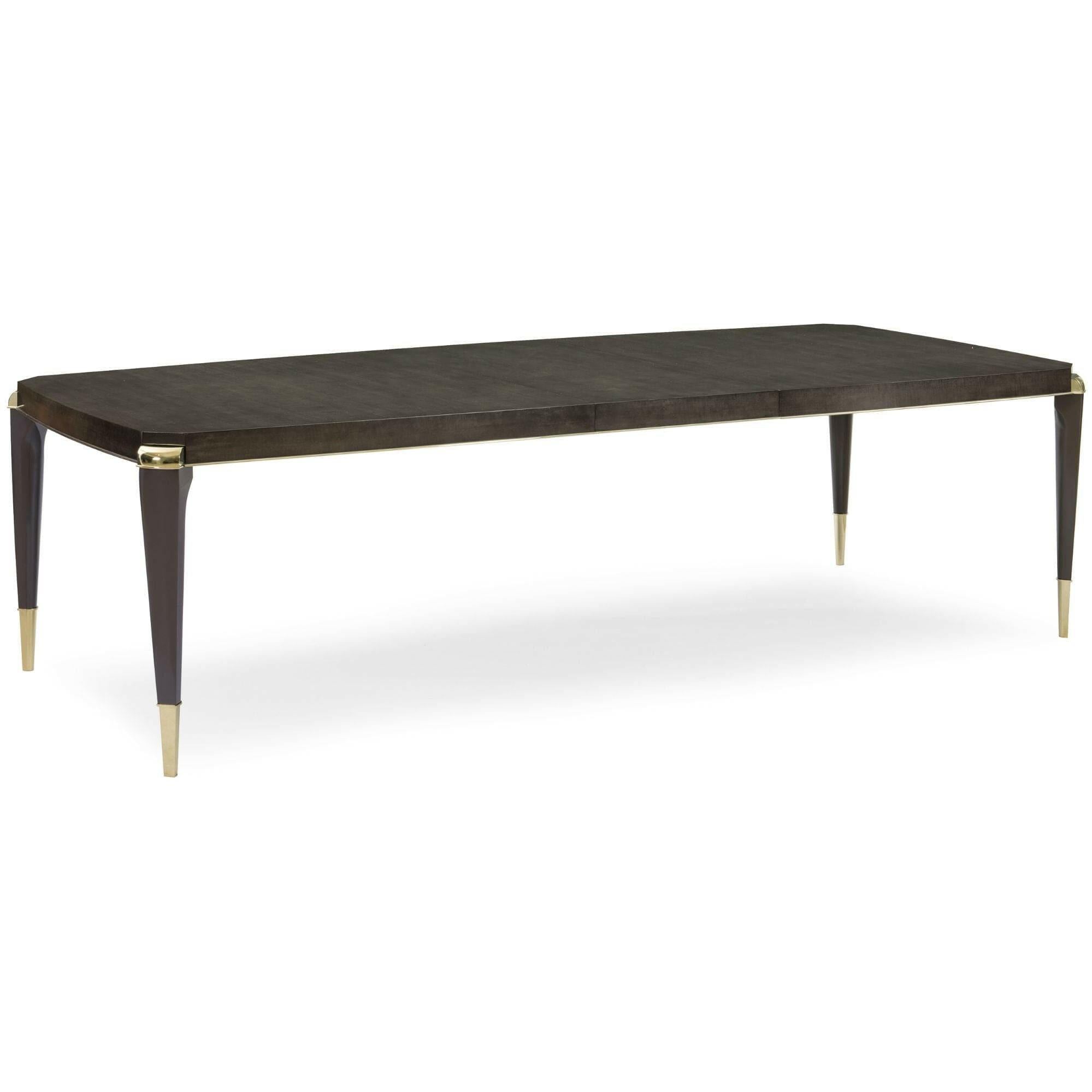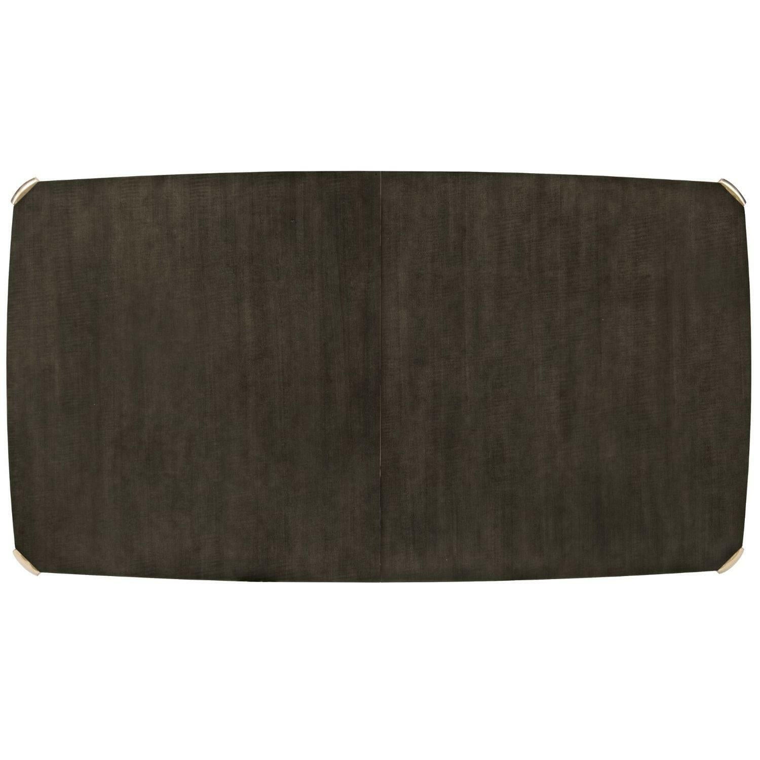Introducing the All Trimmed Out Dining Table, a truly unique and luxurious piece from House of Isabella. This stunning table is perfect for large dining parties, with its expansive size and elegant design. The Charcoal Anegre wood is delicately figured and shaped into a bowed rectangular form, with chamfered corners adorned with Whisper of Gold metal caps. The apron is rimmed with a thin Whisper of Gold bead, adding a touch of glamour to the modern cabriole legs. And for ultimate dining flexibility, this table expands from 83 inches to 123 inches with two 20-inch leaves.