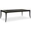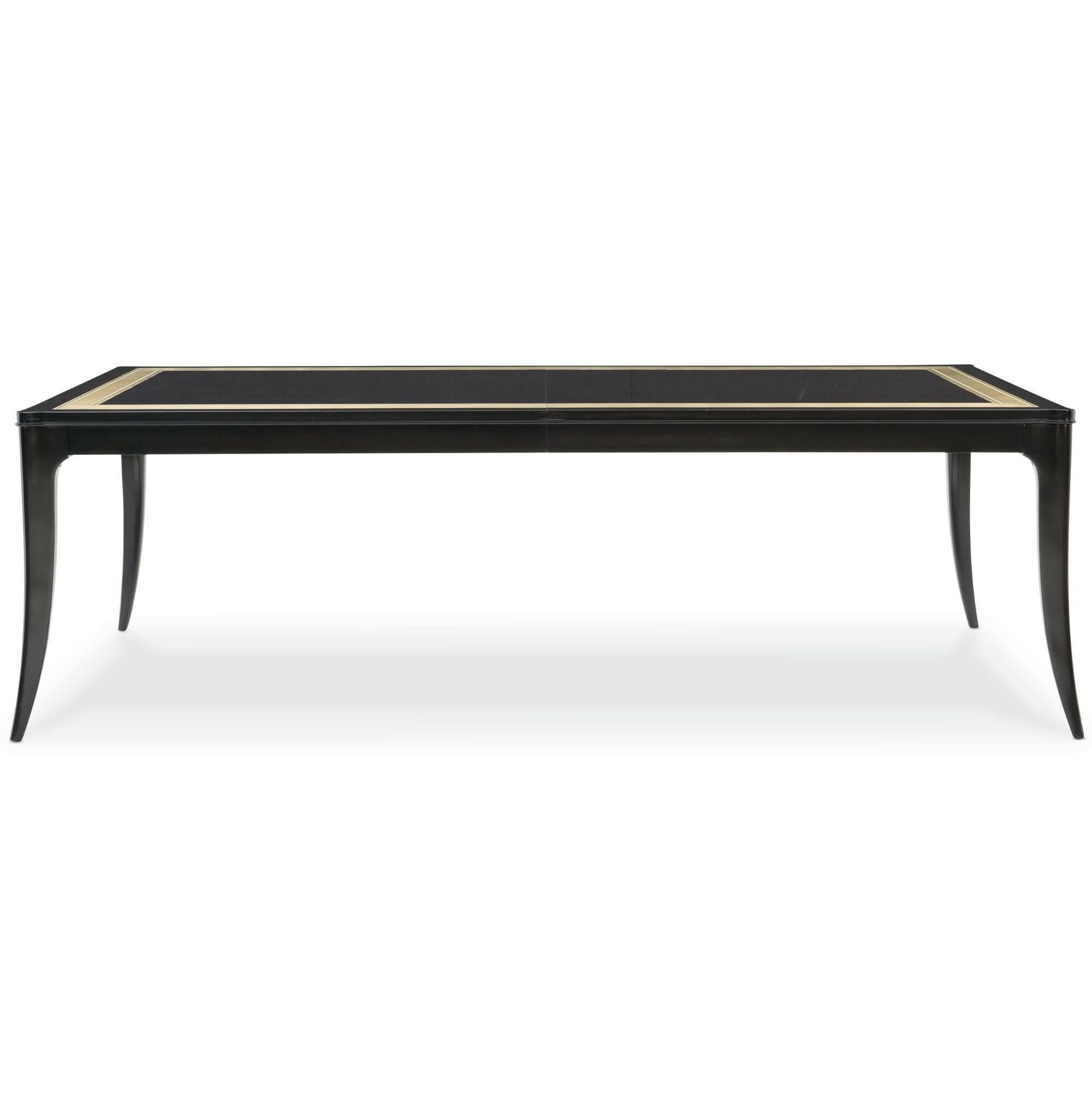 Dreaming of a dining room that reflects your personal style and love of design? We say: Bon Appetit! This remarkable rectangular table is as inherently dramatic as the ebony that inspired it, and equally as stunning. It offers generously scaled proportions brought to life in rich Satin Ebony highlighted with an intricately stencilled top border pattern in Auric. Two 23.5-inch leaves expand its length to 142 inches, ensuring you can include everyone at your next event or family gathering. Add your favourite dining chairs and enjoy the magnificence of its bold presence. Table finished in Satin Ebony and Golden Blonde Leaf. Top border has stenciled pattern in Auric. Table extends to 142" with two 23.5" leaves.
