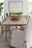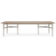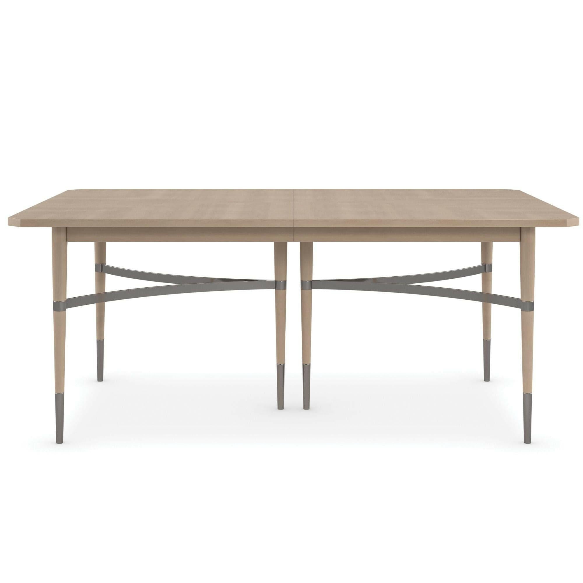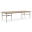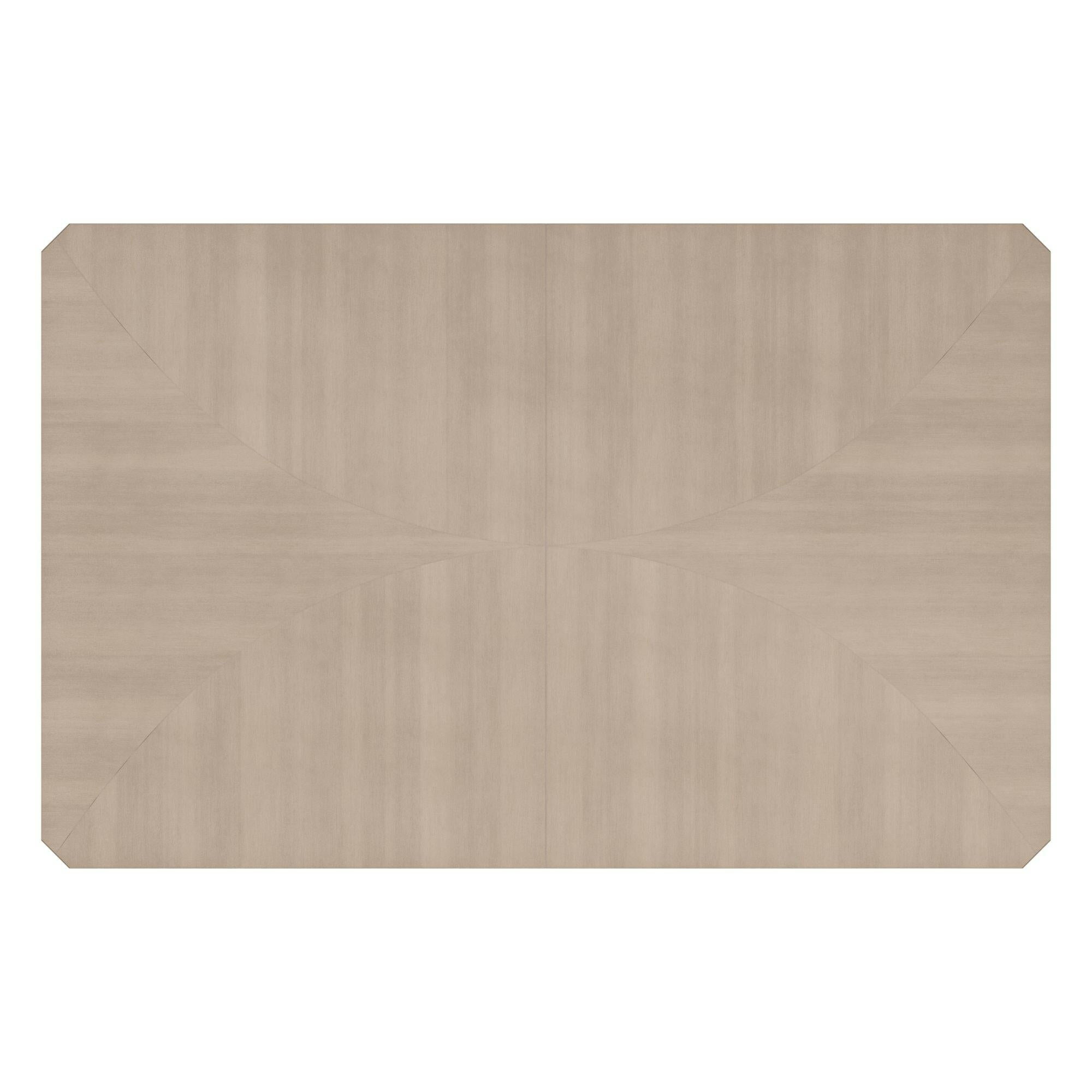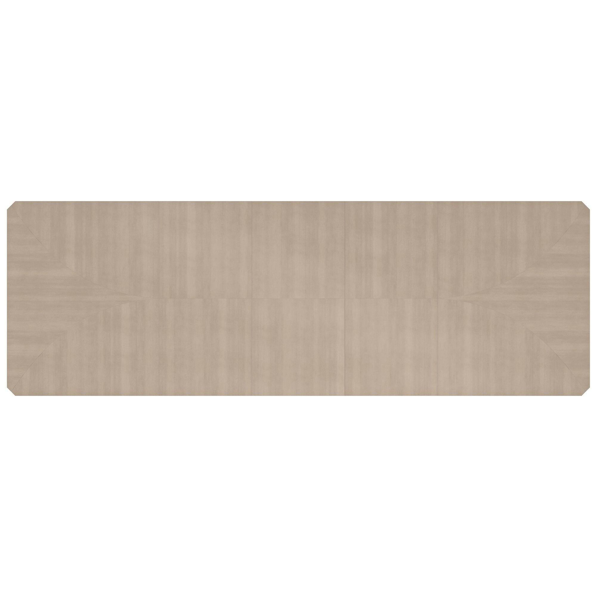 Introducing the Here to Accommodate Dining Table, the perfect solution for hosting large gatherings and unexpected guests. This extension dining table boasts a natural wood grain finish and casual elegance, making it suitable for both entertaining and everyday use. Crafted with slip-matched Japanese Sen veneers, the table features a stunning linear wood grain pattern in a tonal beige finish with undertones of grey. The Deep Bronze metal stretchers and ferrules add a touch of luxury to the design. With three 22-inch leaves, the table extends to a generous 138 inches and can comfortably seat 12 people. A centre leg is included for added support when fully opened. The table top is slip matched Coffee Japanese Sen in Woodland Gray, while the metal stretcher and ferrules are in Deep Bronze and the table legs and aprons are in Woodland Gray.