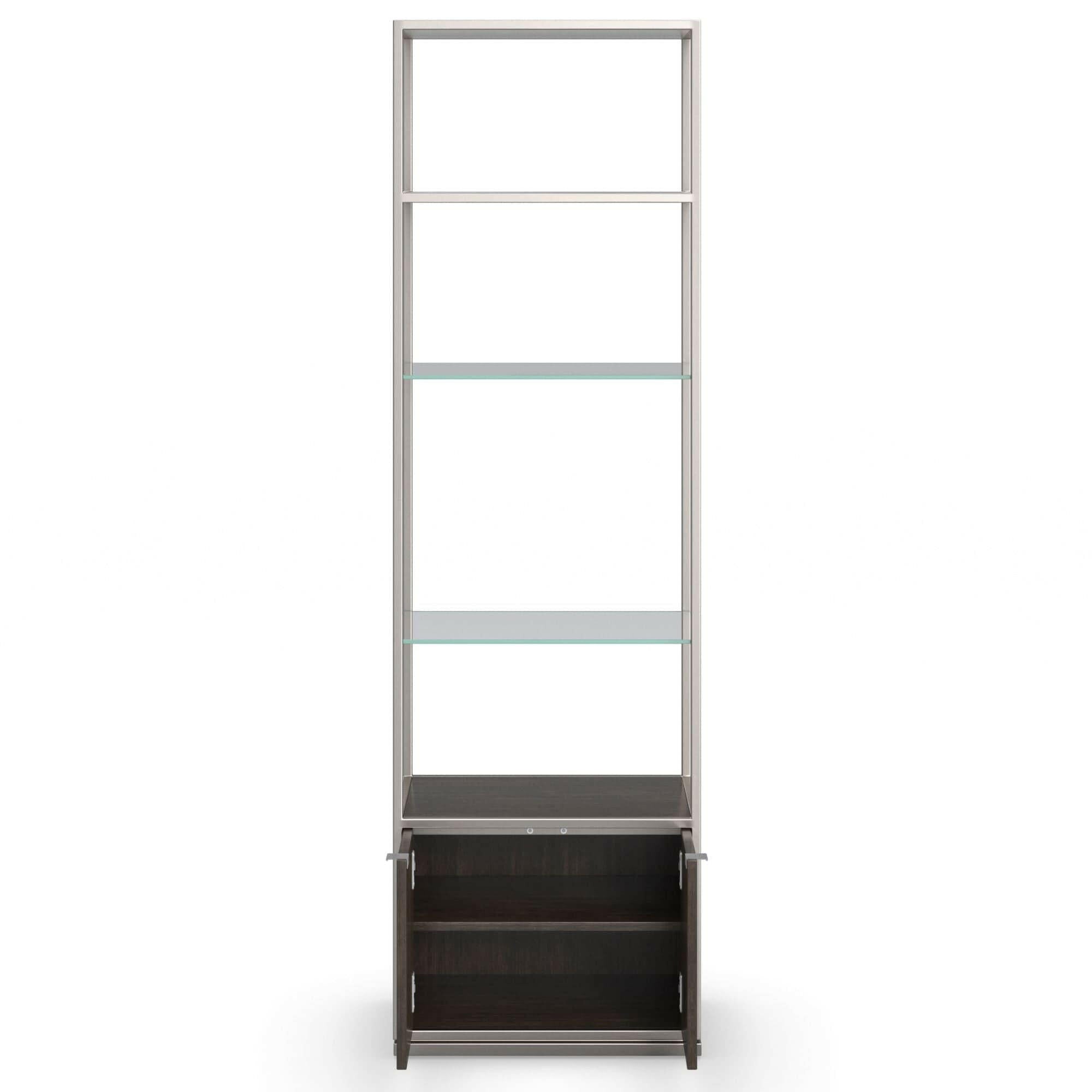 Introducing the La Moda Display Unit Pier Cabinet, a truly unique and striking addition to any home. With its towering profile and streamlined design, this Euro-modern bookcase is sure to make a statement. The metal frame is beautifully complemented by warm wood veneers, creating a perfect balance of materials. Two glass shelves provide an airy, open space for displaying books and collectables, while wood doors conceal additional closed storage at the base.
