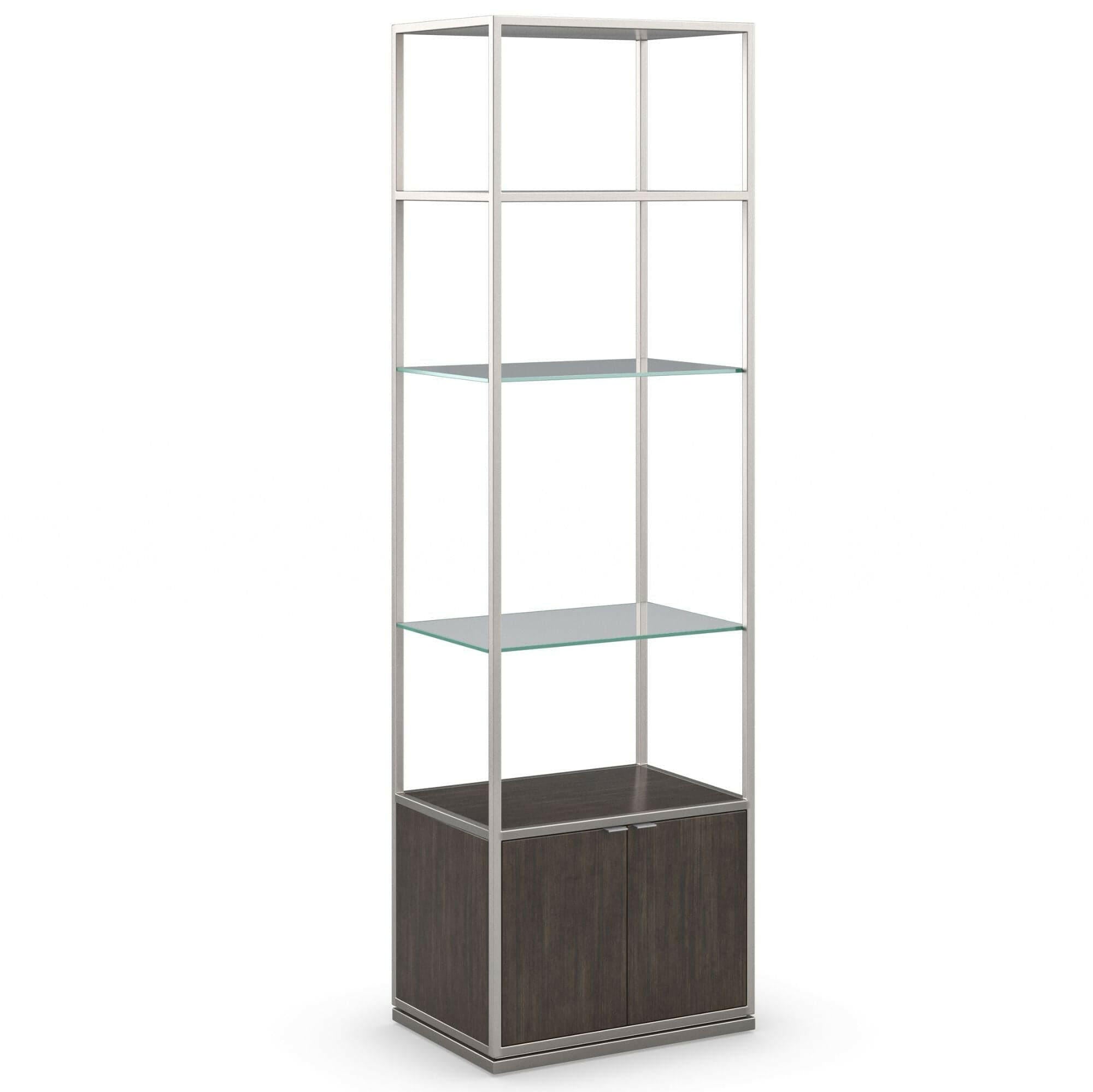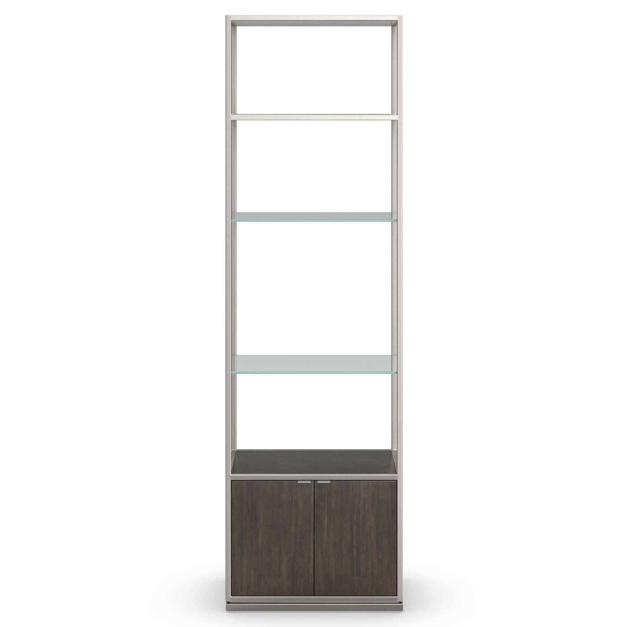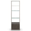 Designed for both home offices and living interiors, this display unit can be paired with our customizable La Moda Base and Bridge units for a cohesive look. The metal frame comes in a sleek Smoked Stainless finish, while the top shelf features a stunning Thunder color. The interior of the unit is finished in Sepia, adding a touch of warmth to the overall design.