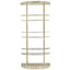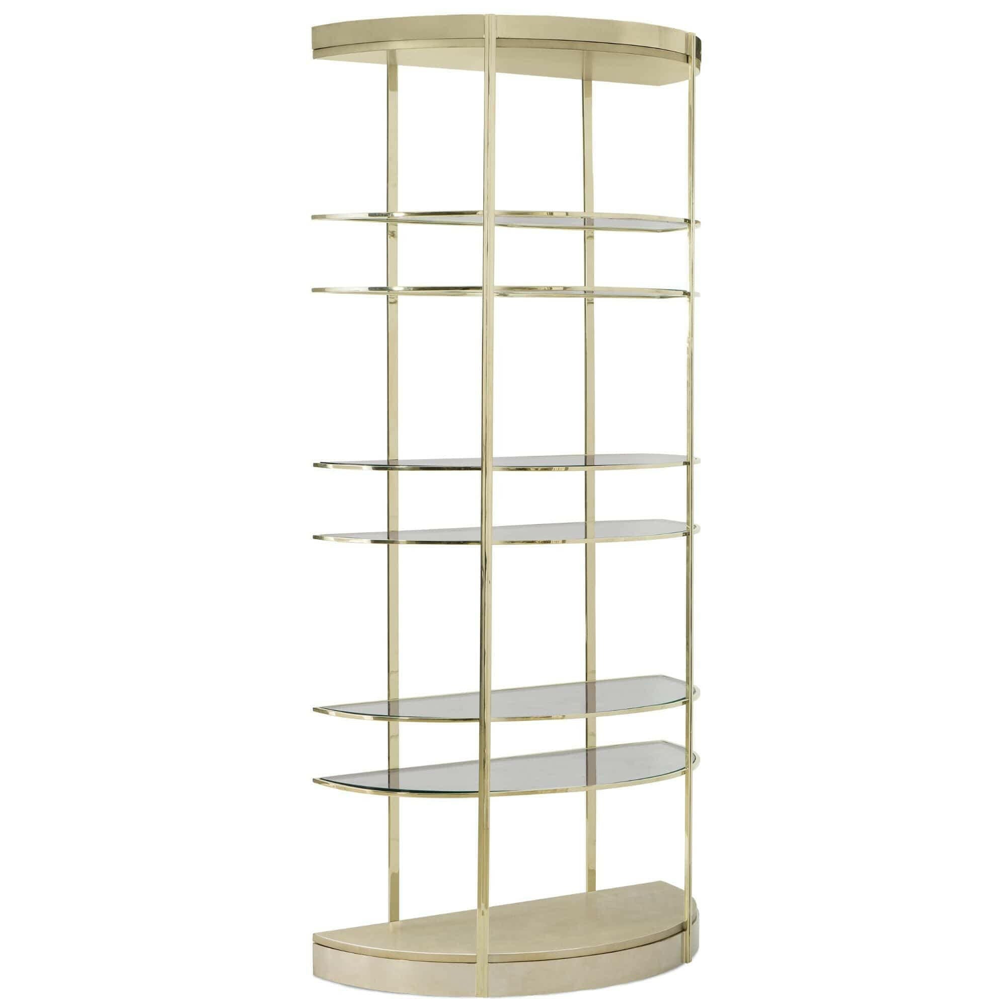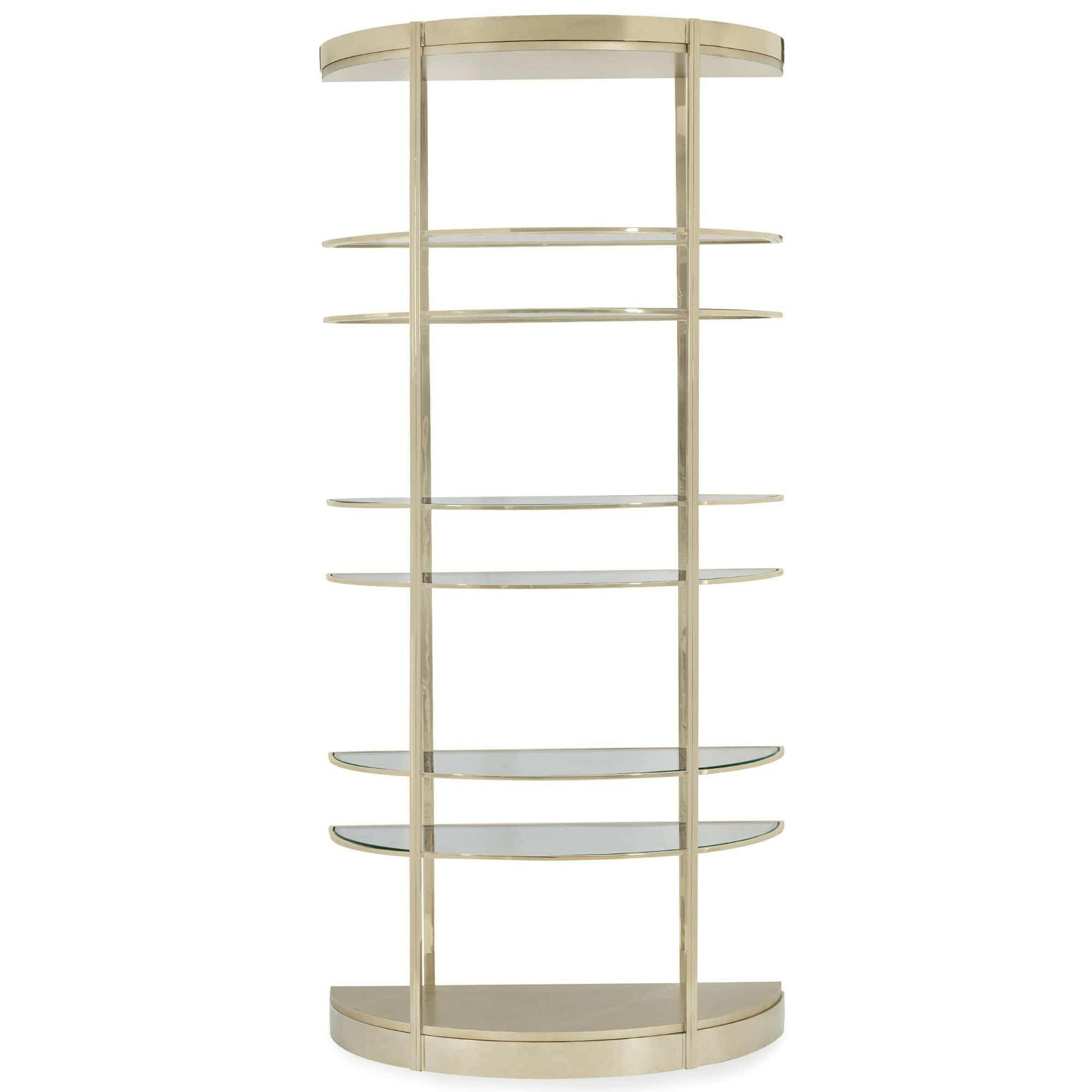 The Up, Up and Away Cabinet from House of Isabella is a truly unique piece of furniture that will elevate any room in your home. Its half-moon shape and contemporary design make it a standout piece that is sure to catch the eye of anyone who enters the room. The high-polished Whisper of Gold metal frame adds a touch of elegance and surrounds six semi-circular glass shelves, creating a light and airy feel. The adjustable brackets allow for easy wall attachment, making this cabinet both functional and stylish. With a crown and base leafed in Auric, this cabinet is the epitome of luxury.