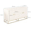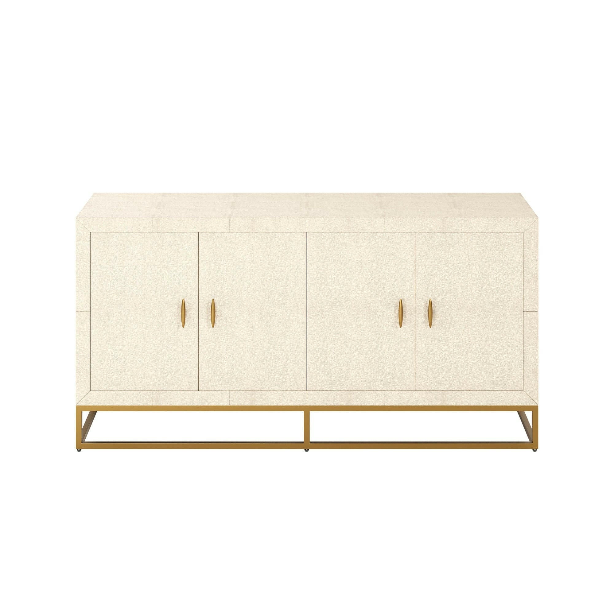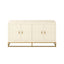 Four-door Ivory sideboard, brass style handles and base, handles require attaching, shelving. 160W x 45D x 80H cm; 85kg Please see attached care and handle instructions