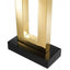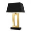 Reflecting the beauty of your furniture arrangement, the sculptural Arlington Table Lamp evokes an enchanting interior ambience. The metal frame with gold finish rests on a black granite base and comes with a black trapezium lampshade.