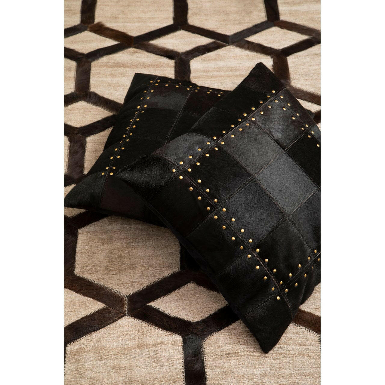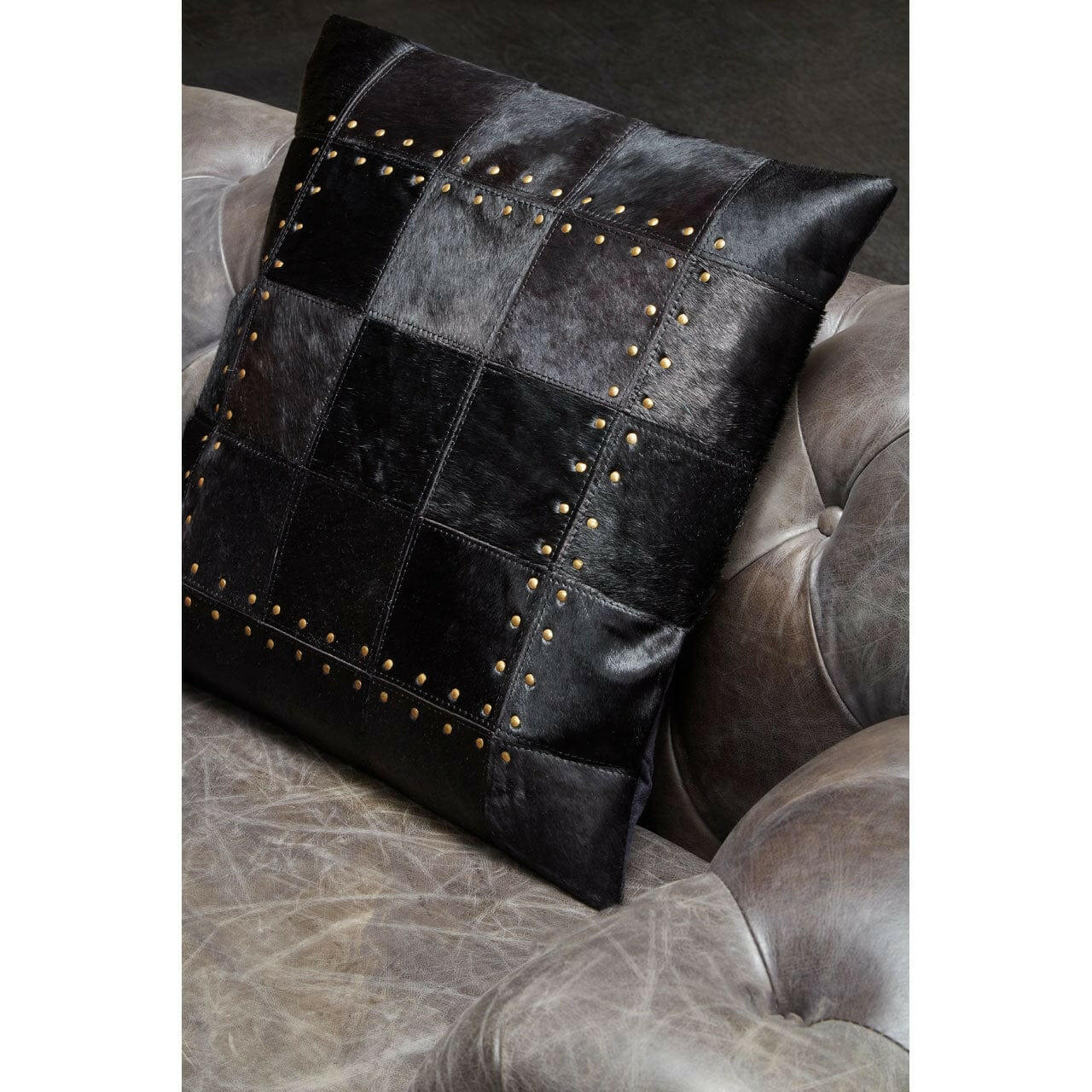 The Safia Multi Black Cushion from House of Isabella is a luxurious addition to any home. Made from genuine suede leather, this cushion features a patchwork pattern and golden metallic studded detail for a touch of elegance. The cushion is filled with hollow polyester fibre for added comfort and measures H10 x W50 x D50cm. It is assembled and can be easily cleaned with a soft cloth, avoiding abrasive cleaners. The cushion comes in assorted colours, making it a versatile and stylish choice for any room. Shop now and enjoy free UK delivery on all orders from House of Isabella.
