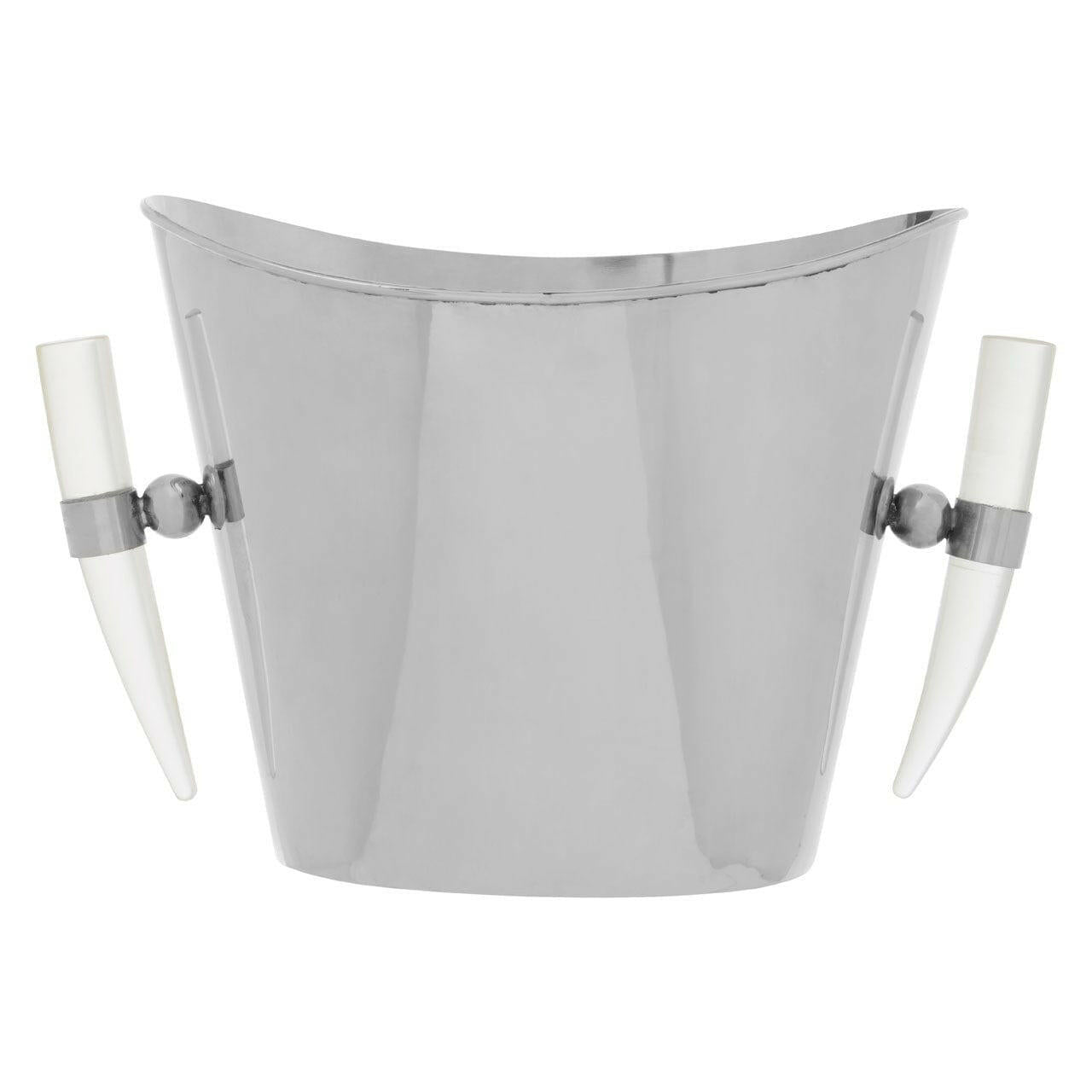 Introducing the Herne Acrylic Horn Handle Wine Cooler, the perfect addition to any wine lover's collection. This sleek and stylish cooler features a tapered design, providing ample space for holding multiple wine bottles. The metallic silver finish adds a touch of elegance, while the curved, boat-shaped top perfectly complements the contoured angles of the acrylic horn handles.
