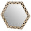 Made from resin, this wall mirror has a hexagonal frame featuring a distinctive geometric pattern in tonal black, ivory and cream. Style with Harlo orbs, tray and bookends for a coordinating look.