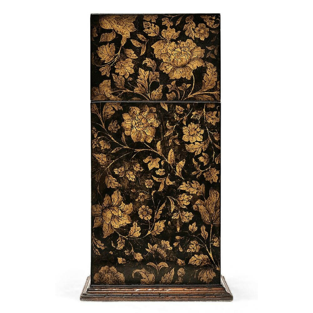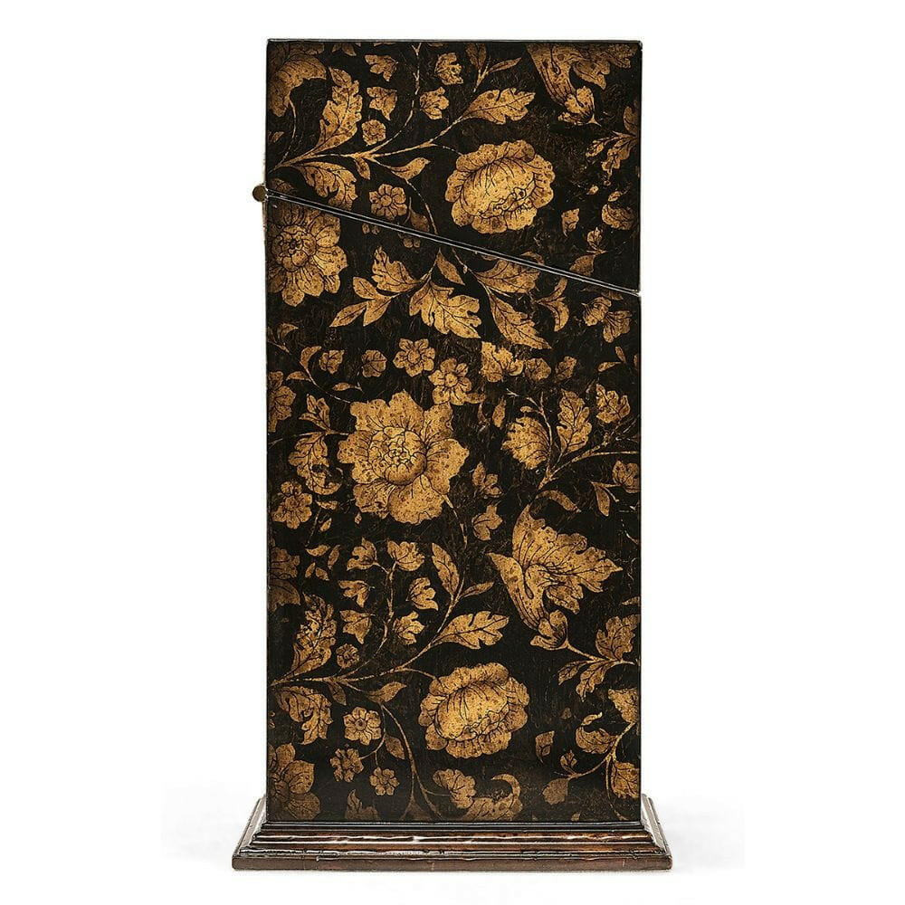The Perfect Decanter A single glass decanter in a lined walnut case, the decorative black finish in Regency chinoiserie style, handpainted and finely detailed, with a stepped solid base. Regency Chinoiserie The all over Regency Chinoiserie design is accentuated by the rich navy fabric lining. Hampton Collection Early 19th century Regency Chinoiserie inspired designs with decorative painted and hand-finished details. An elegant collection of accessories that Jonathan Charles loves to combine with art deco designs of the Luxe collection.