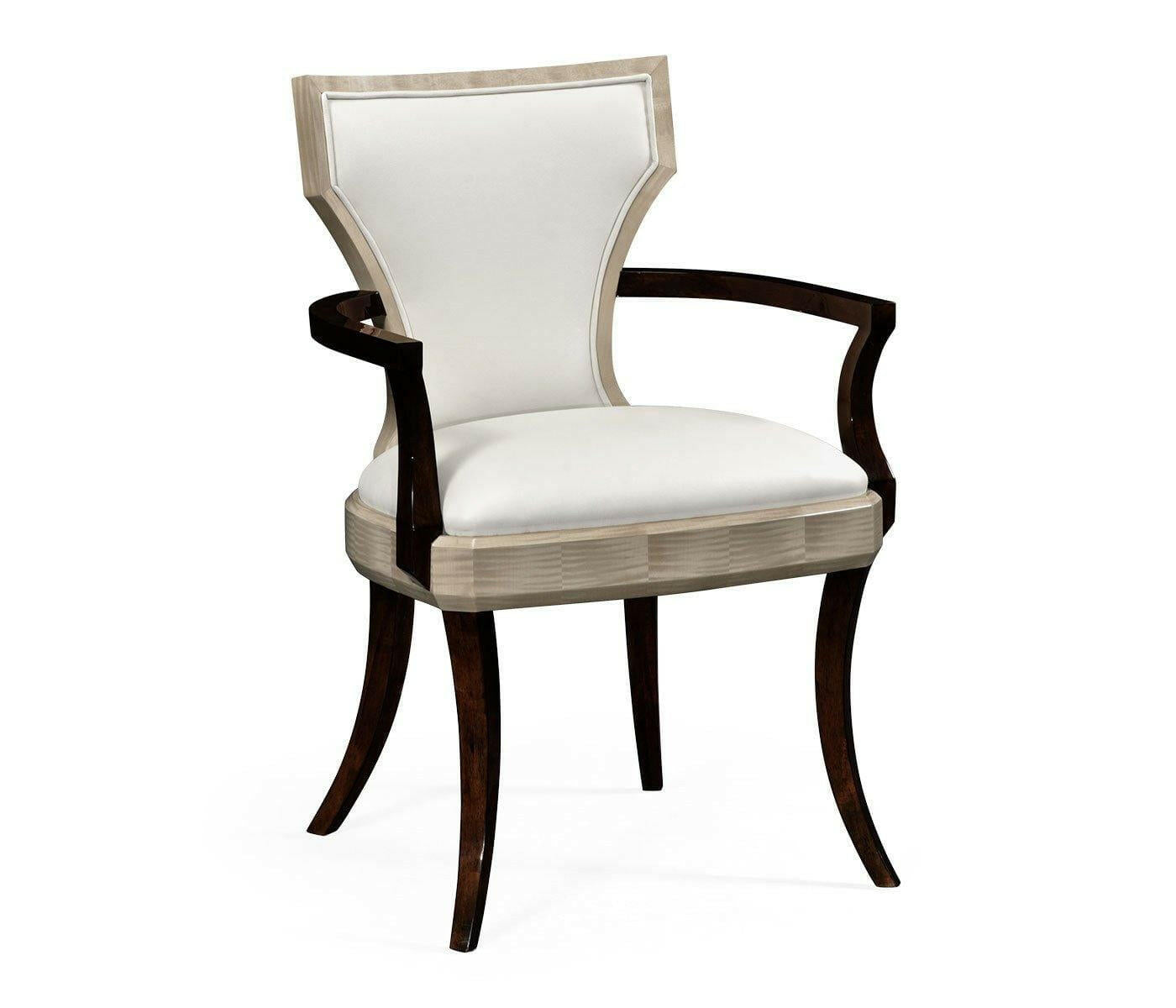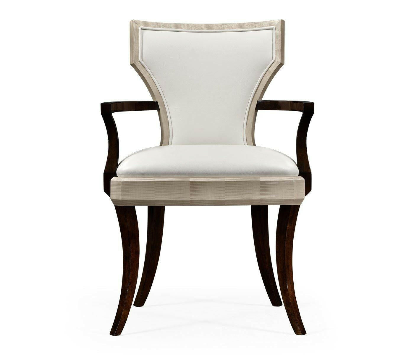 Jonathan Charles Dining Chair with Arms Klismos in Champagne - Cream Leather