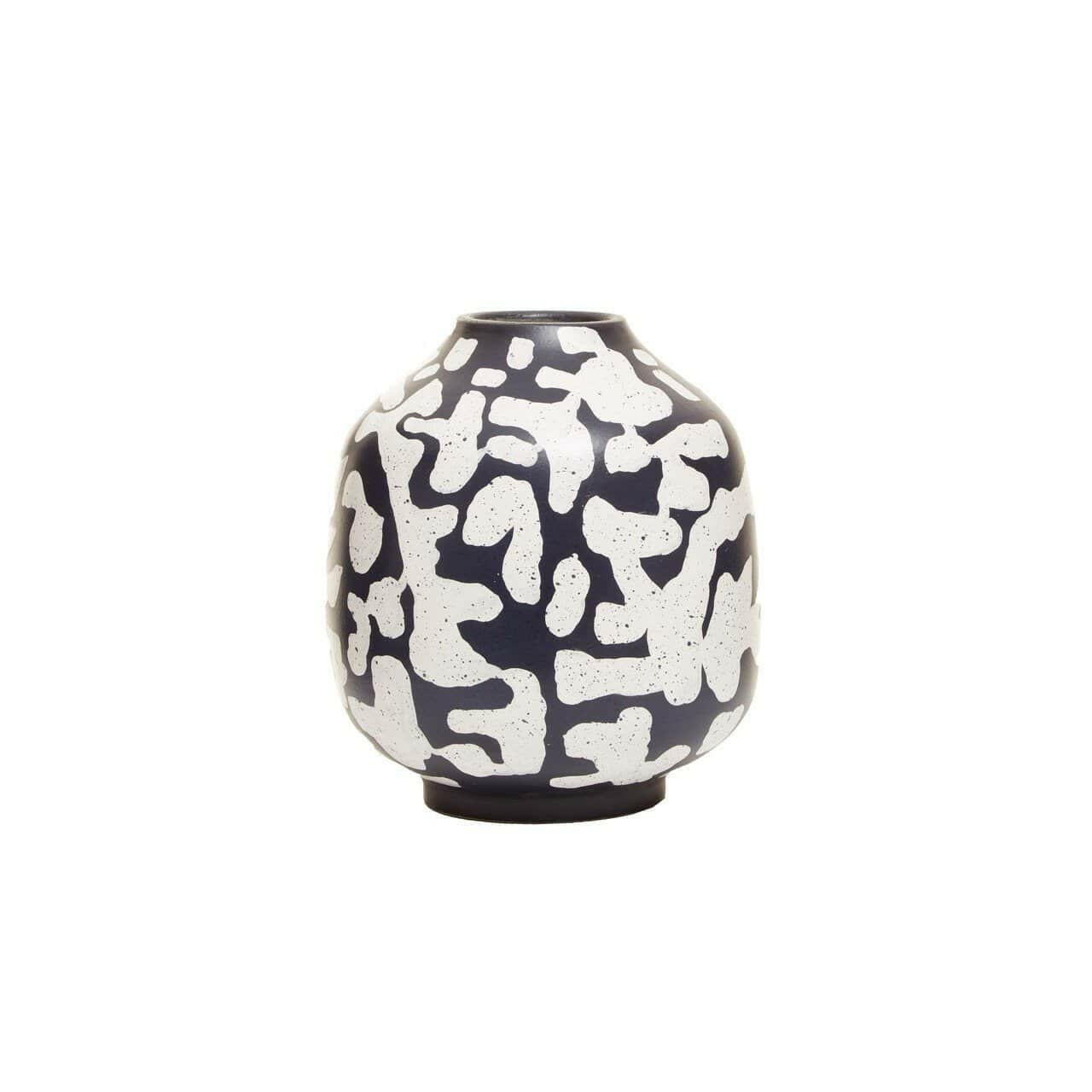 This Tundra vase displays an abstract pattern in dark blue and white contrast. Indulge in artful style and simultaneously elevate the living room or hallway aaesthetic with this earthenware piece.