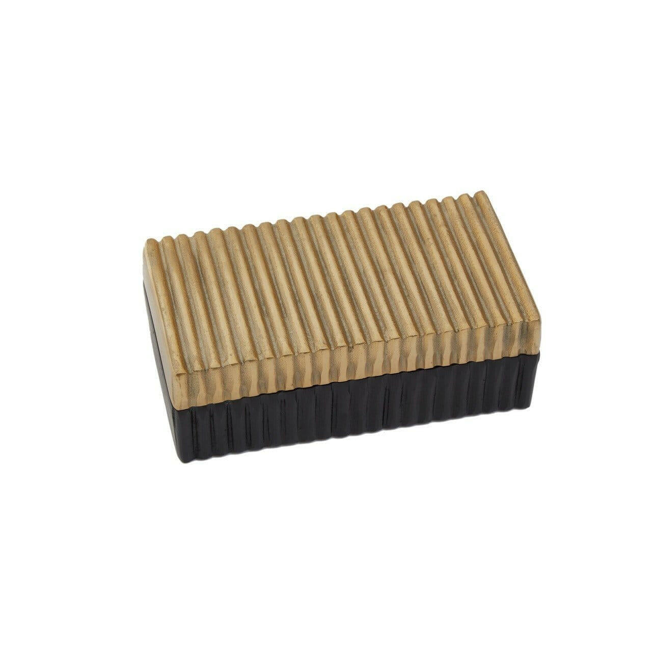 Elegantly handcrafted, this aluminium trinket box is adorned with fluted pattern detail complemented with the black and warm metallic finish. With a removable lid, this small trinket box ensures jewellery items are organised and close to hand.