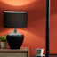 A curved elegant shape, this contemporary lamp has a wood base with a stunning etched design across it, finished in a striking antique black. Finish with one of our stylish cylinder shades from our extensive range. Recommended lampshade size: 35cm diameter