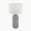 This beautiful tall ceramic table lamp features a textured tactile detail. Finished in a simple grey glaze this lamp also comes complete with a crisp white faux cotton shade to finish the clean neutral look. Also available in other colours.