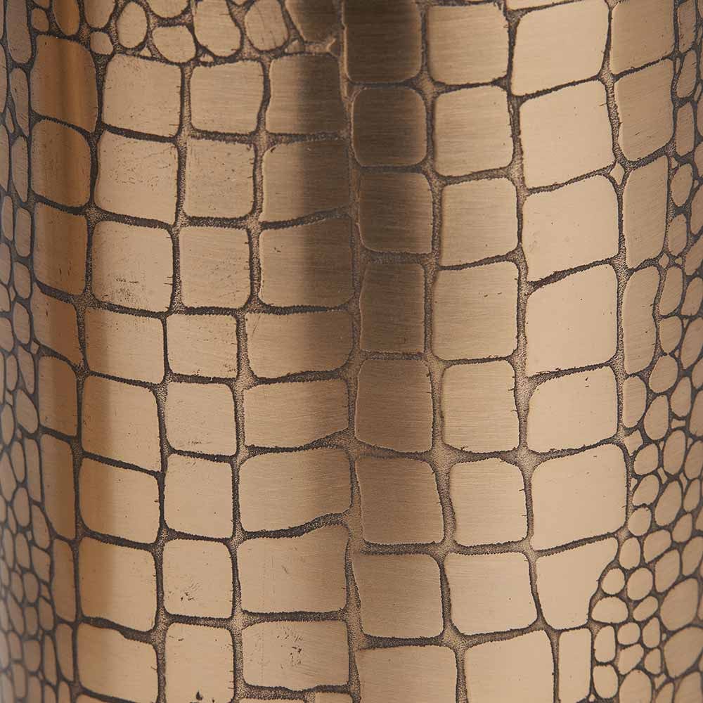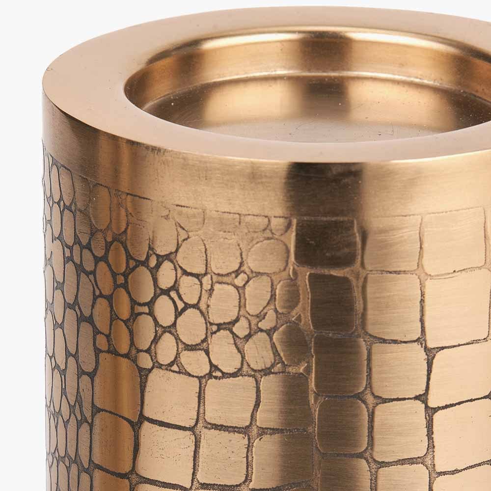 Set of 3 Antique Brass Croc Print Metal Pillar Candle Holders