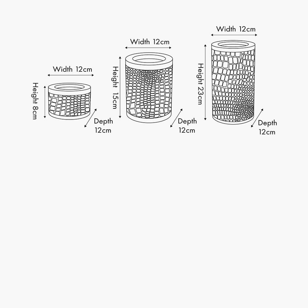 Elevate your home décor with our set of 3 Pillar Candle Holders. The set of Antique Brass croc effect print candle holders, in 3 different sizes, have been crafted in India and hand finished by artisans. They can be used together to create a striking table centre piece or used separately throughout your interior, the choice is yours.