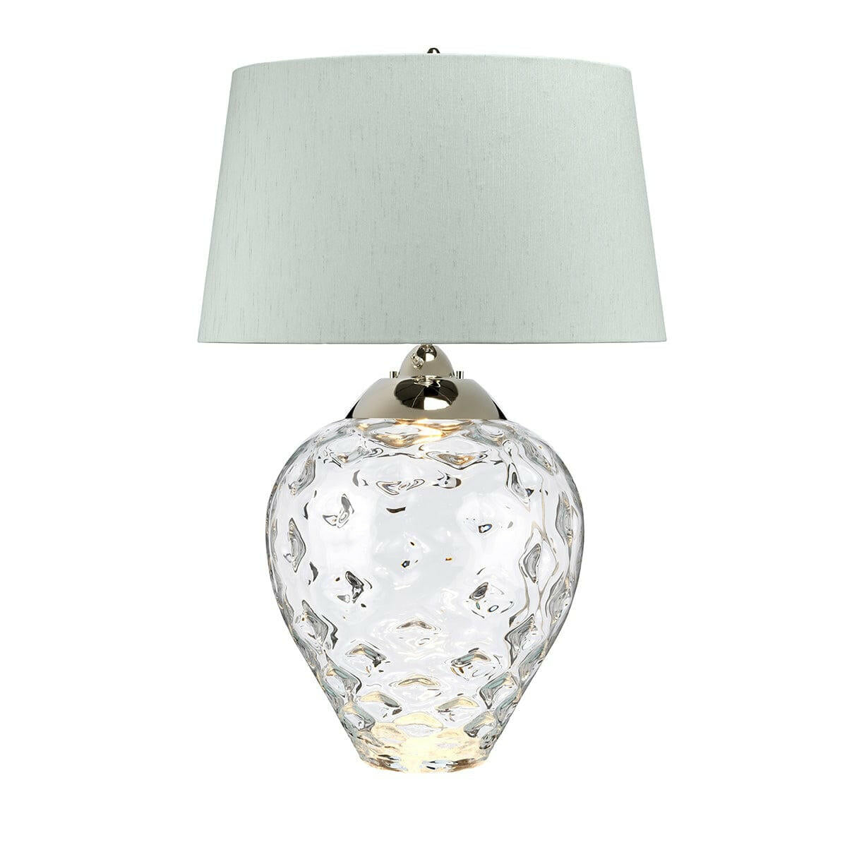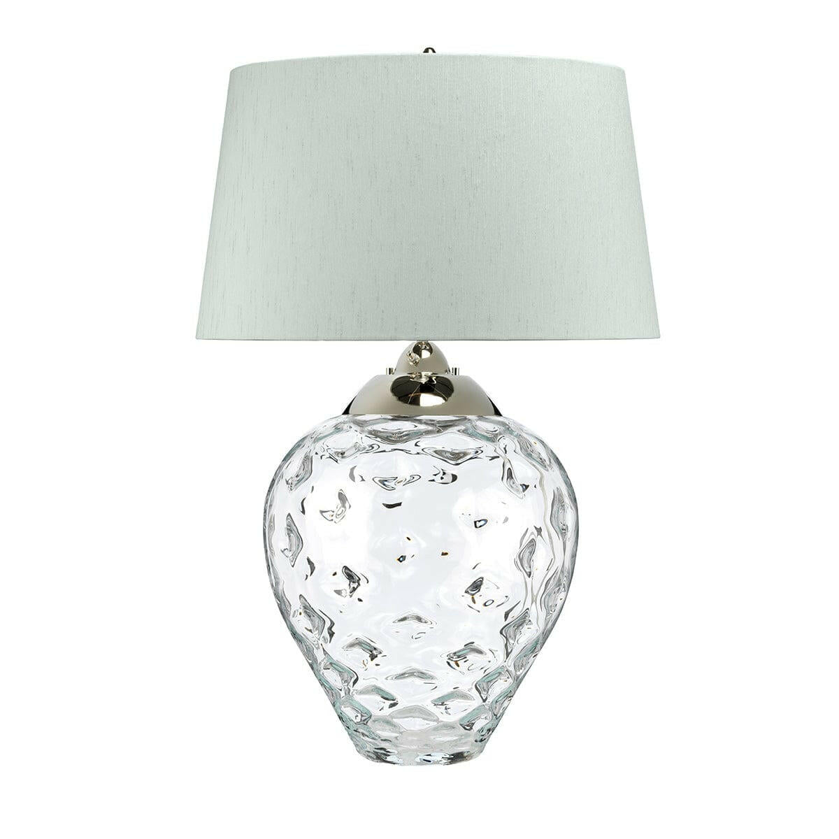 Samara's textured blown glass, classic polished nickel metal-work and beautiful hand-made fabric shades combine to form an arresting and gorgeous table-lamp. Combined with a 4-way switch, this design features independent light sources for the shade and the glass. ( GU10 supplied )