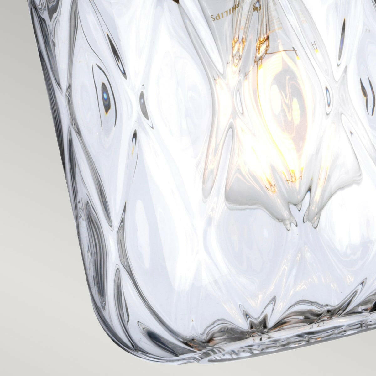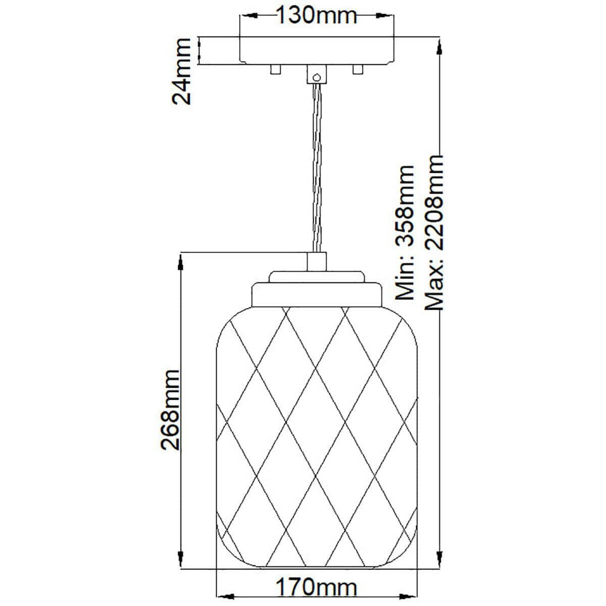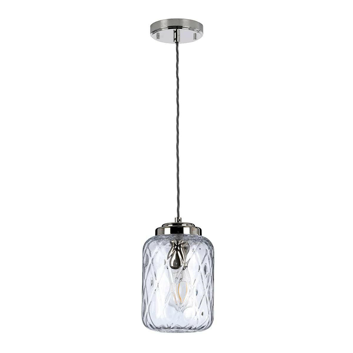 The elegant diamond patterned mouth-blown glass adds refined detail to this contemporary pendant. A compact size and neutral tones to suit most rooms and interior styles.