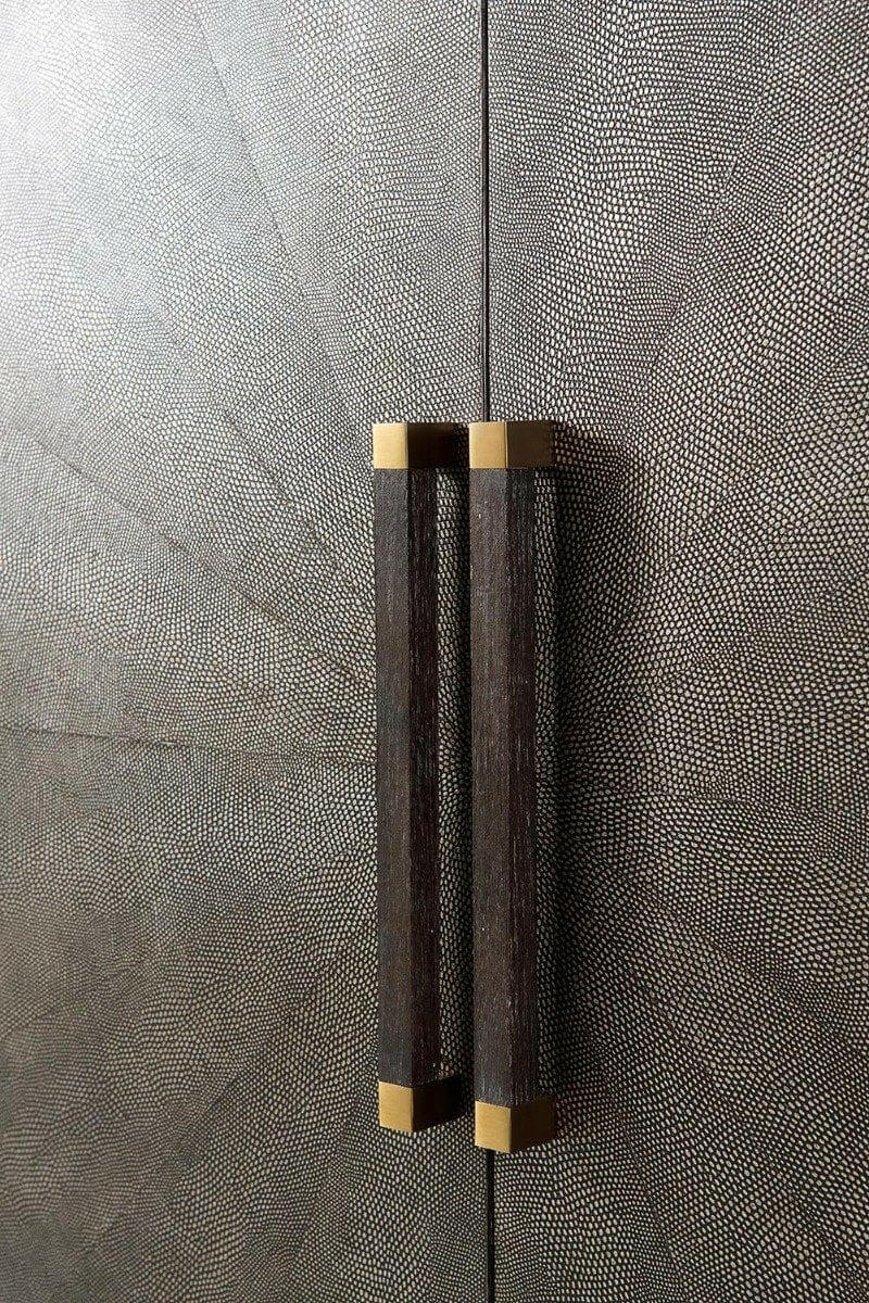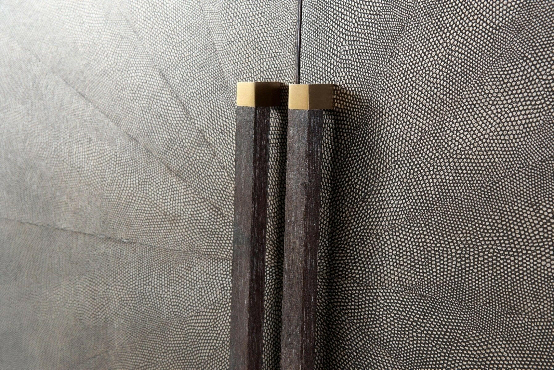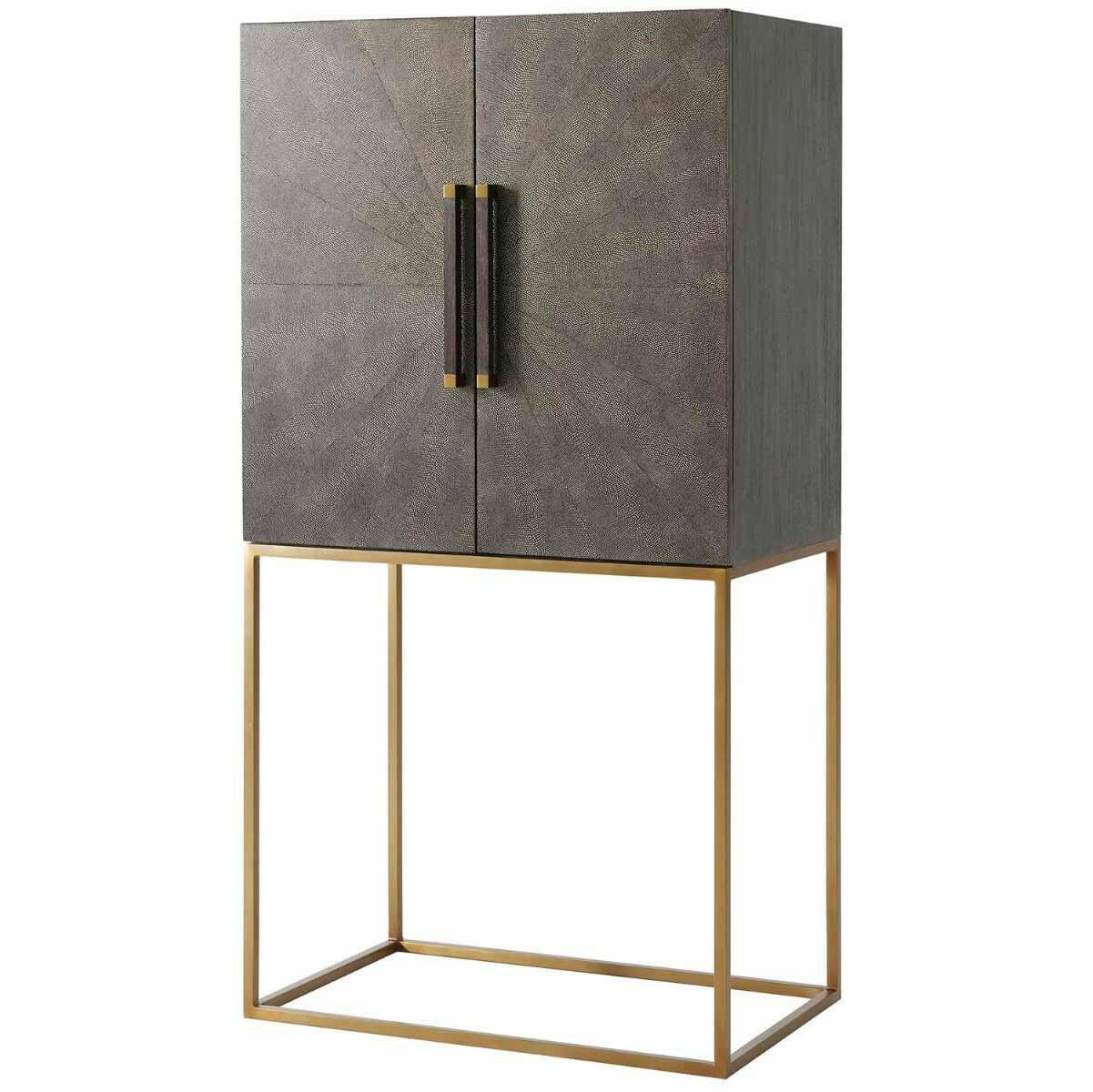 Instantly elevate any living room scheme or entertainment area with the sumptuous design of the TA Studio Bar Cabinet Travers. Quietly impressive, this modern drinks cabinet is defined by exquisite attention to detail. Notably, the double doors are decoratively embossed in the style of exotic Komodo animal skin – arranged in striking star-shaped leather in a dark Tempest tone.