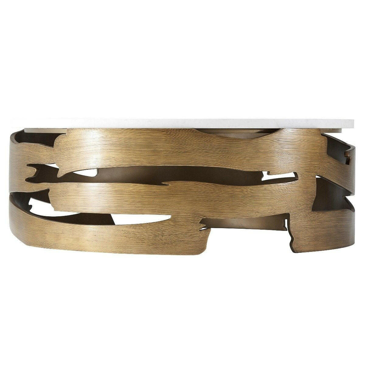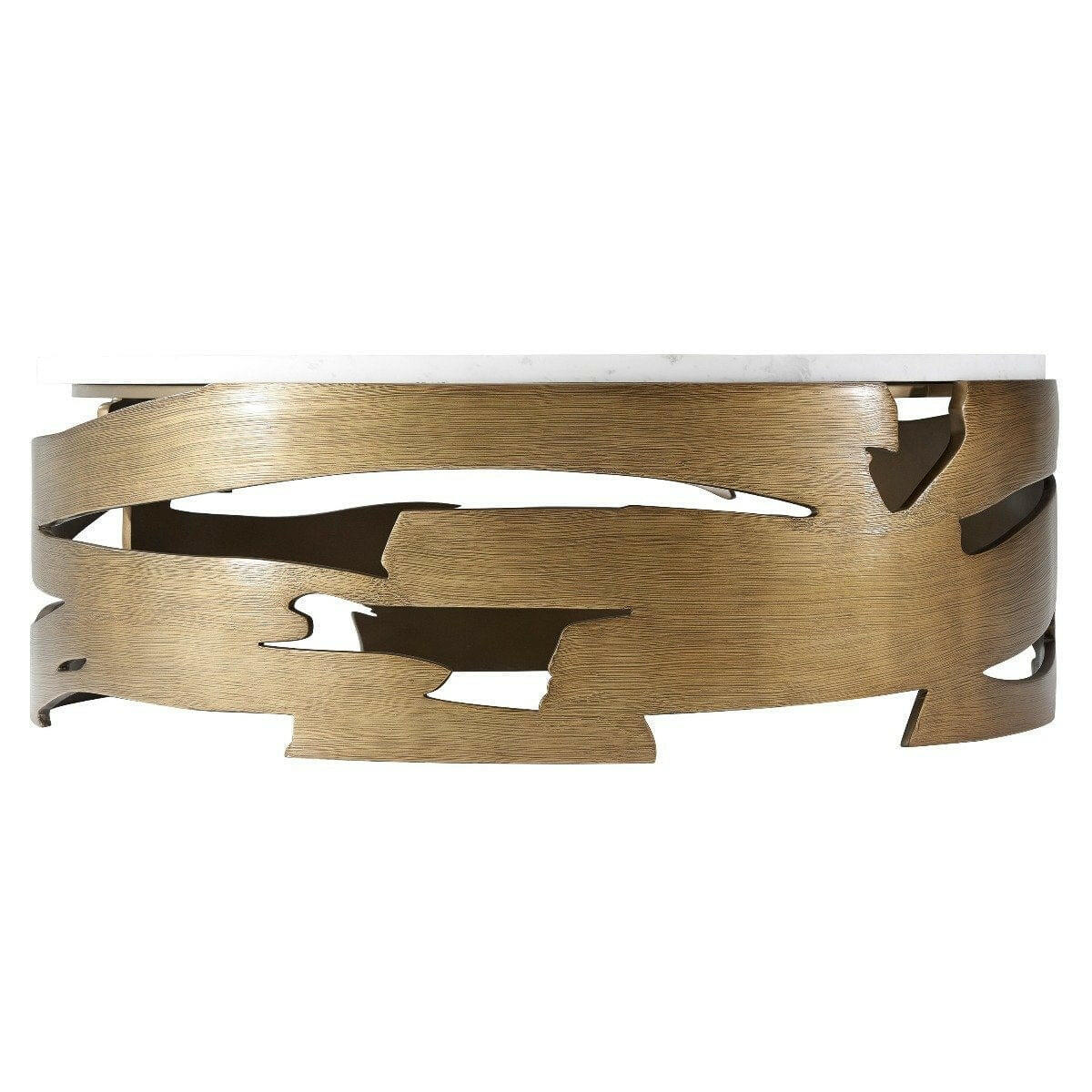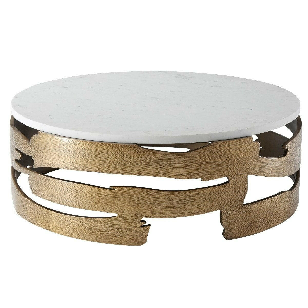 The Theodore Alexander Round Coffee Table Washi is a stunning addition to any living space. Its figured Bianco Carrara marble top adds a touch of elegance and sophistication, while the gilt open brushstroke base adds a modern and luxurious touch. This round coffee table is not only visually appealing, but also functional with its generous dimensions of 122 x 122 x 43.2. It is the perfect piece to gather around with friends and family, or to display your favorite decor items. At House of Isabella, we offer free UK delivery on all our luxurious furniture and interiors, making it easier for you to bring this beautiful coffee table into your home.