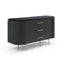 This exquisite Lantine 3 Drawer Dresser is a timeless piece of furniture that will easily transform any bedroom interior. Expertly crafted from premium black oak and featuring three soft-close drawers, this dresser is designed with a sleek matte black lacquer ribbed end panels, brass legs and handles that lend it a luxurious touch. The elegant brass handles and legs emphasize the modern look and the soft-close drawers provide effortless use. With its beautiful design, this dresser is perfect for any modern home and will be a beloved fixture for years to come.