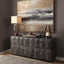 The Barlas Media Console is a truly unique piece of furniture that will add a touch of luxury to any home. Made almost entirely of solid reclaimed fir, this console features bevel paneled front and sides, finished in a heavily aged black with a light gray glaze and ember highlights. Its three soft close doors open to reveal one adjustable shelf in each compartment, providing ample storage space. The solid wood construction will continue to develop character over time, with small cracks and uneven surfaces adding to its authenticity. Part of the Black Label collection by Uttermost, this console is designed by skilled in-house designers and showcases American style without compromising on quality. The focus on upscale home luxury is evident in the generous proportions, oversized mirrors, large sets of artwork, and elaborate lamps and lighting fixtures. And while the design is fashion-forward, no shortcuts are taken in manufacturing to ensure that the product exceeds expectations. Measuring 172.7 cm in width, 44.4 cm in depth, and 76.2 cm in height, the Barlas Media Console is a statement piece that will elevate any room. With free UK delivery, House of Isabella offers luxurious furniture and interiors that will add a touch of elegance to your home.