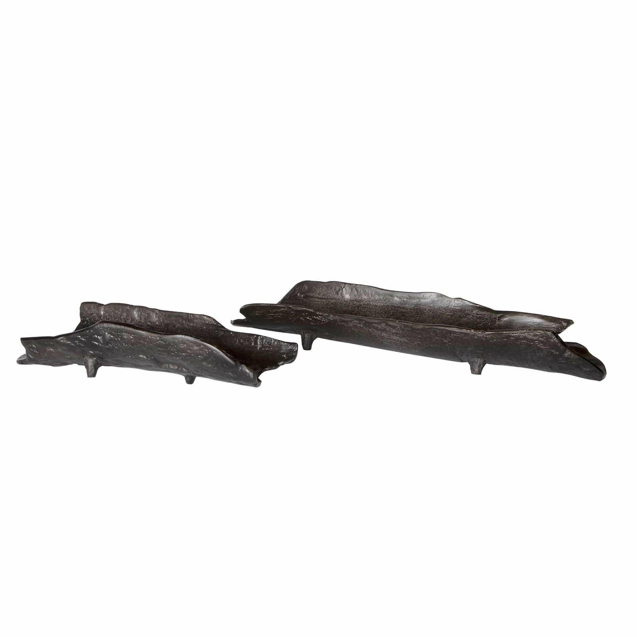 Introducing the Caryn Nickel Trays S/2, a truly unique addition to any home. These trays feature organic shapes and are finished in a dark black nickel, giving them a sleek and modern look. The smaller tray measures 13x3x6 inches while the larger tray measures 21x3x6 inches, making them perfect for displaying on a coffee table or using as a serving tray.