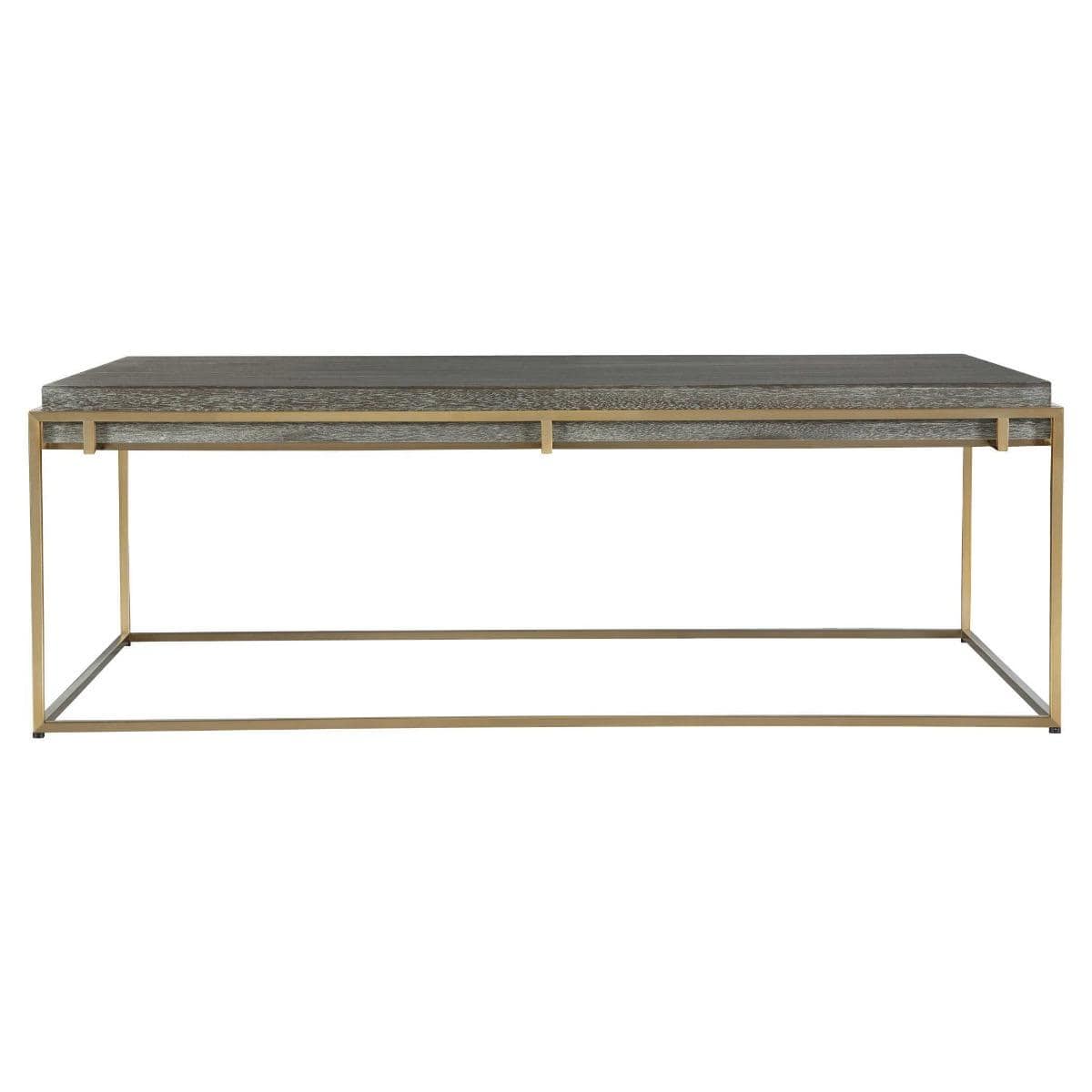 Uttermost Surround Sark Walnut Coffee Table is a truly unique and luxurious addition to any home. This contemporary piece features an acacia veneer top in a dark walnut stain, washed with a light gray glaze, suspended in a stainless steel framework plated in brushed brass. The result is a stunning combination of materials that will elevate the style of any living space. Uttermost is a family owned and managed US interior brand that prides itself on its upscale luxury aesthetic. With an extensive range of furniture, lighting, and accessories, our products are designed by some of the most talented designers in the industry. Each collection is carefully curated to bring fresh and unique designs to your home. At Uttermost, we understand that good design is nothing without quality manufacturing. That's why we ensure that our products are made to the highest levels of quality, exceeding expectations and providing long-lasting beauty and functionality. The Uttermost Surround Sark Walnut Coffee Table measures 121.9 cm in width, 71.1 cm in depth, and 40.6 cm in height, making it the perfect size for any living room. And with free UK delivery from House of Isabella, it's never been easier to add a touch of luxury to your home.